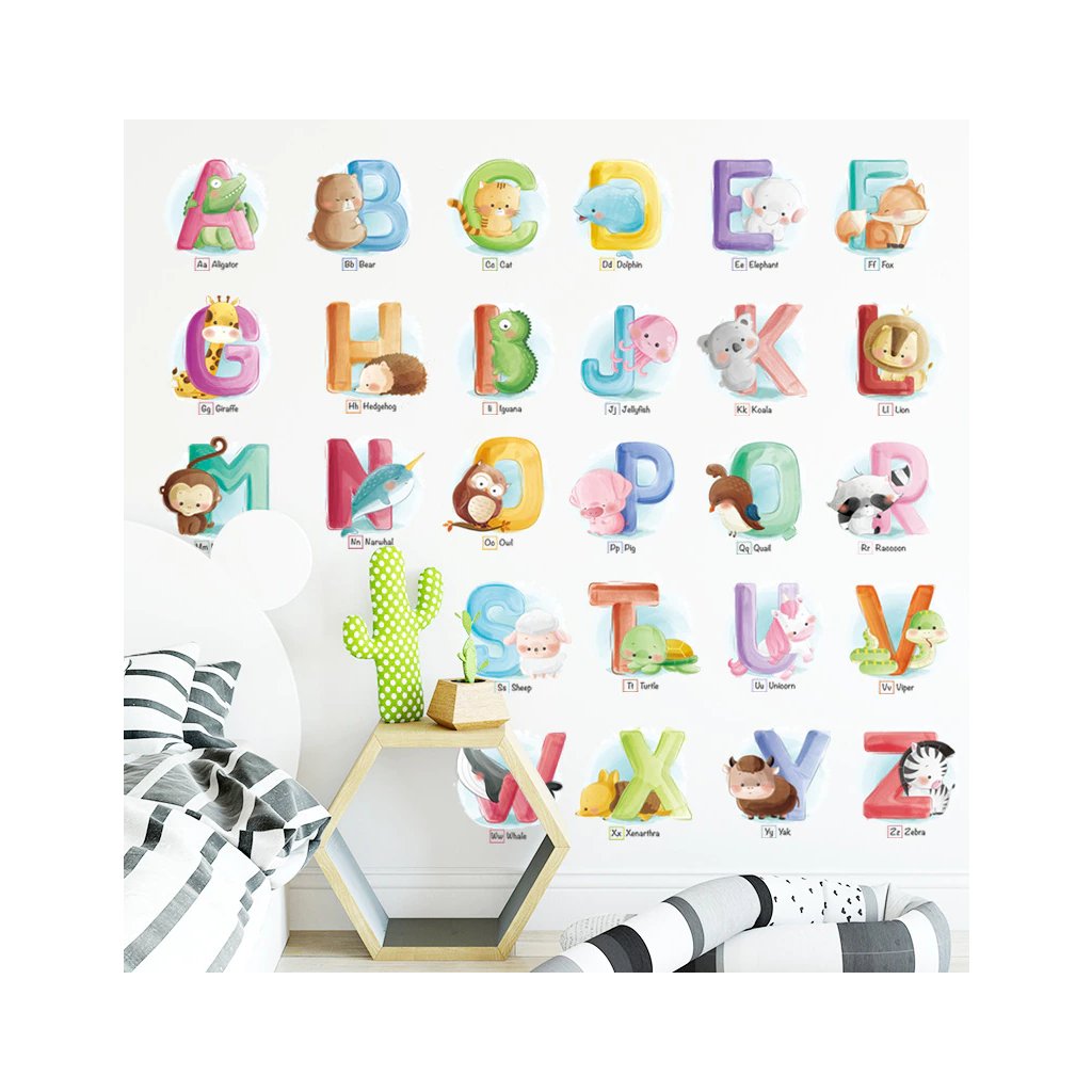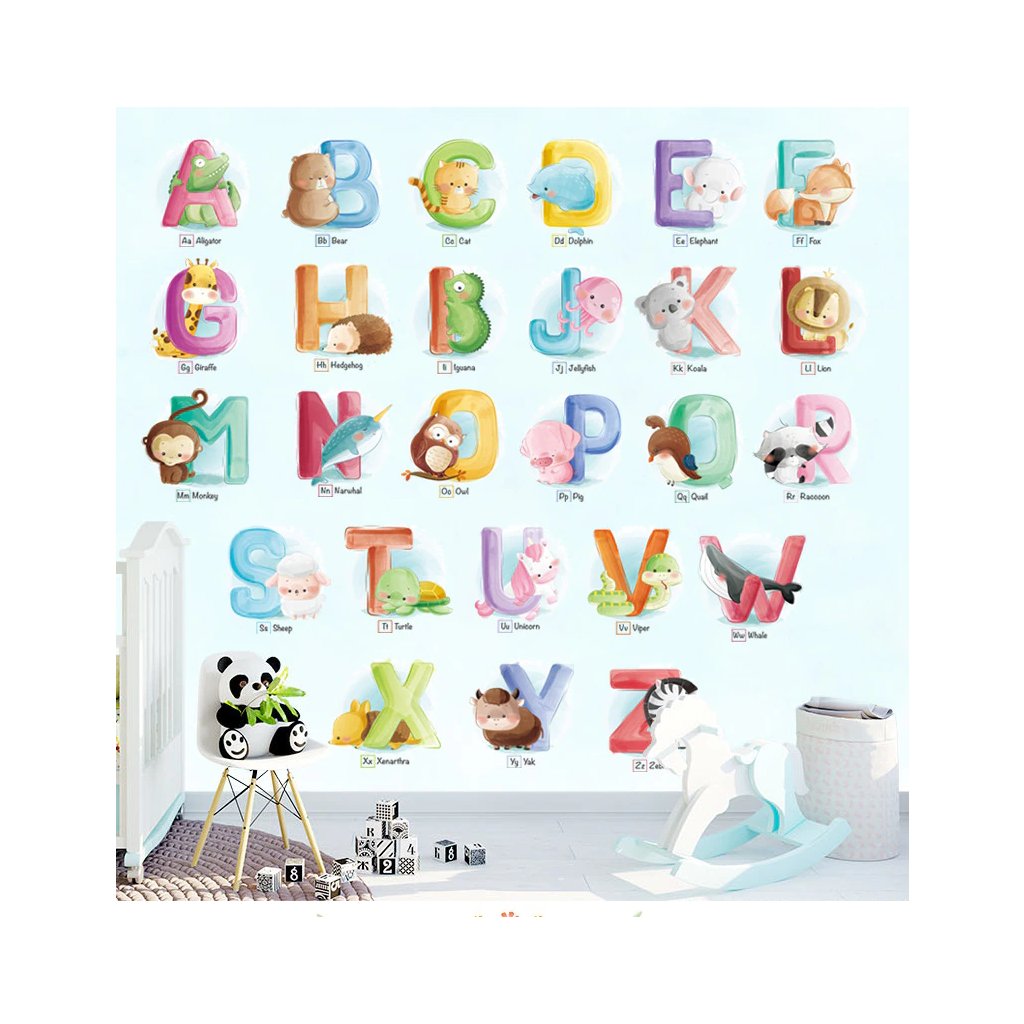 Táto roztomilá detská samolepka na stenu ABECEDA so zvieratkami rozžiari očká vašich najmilších.