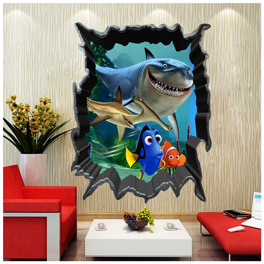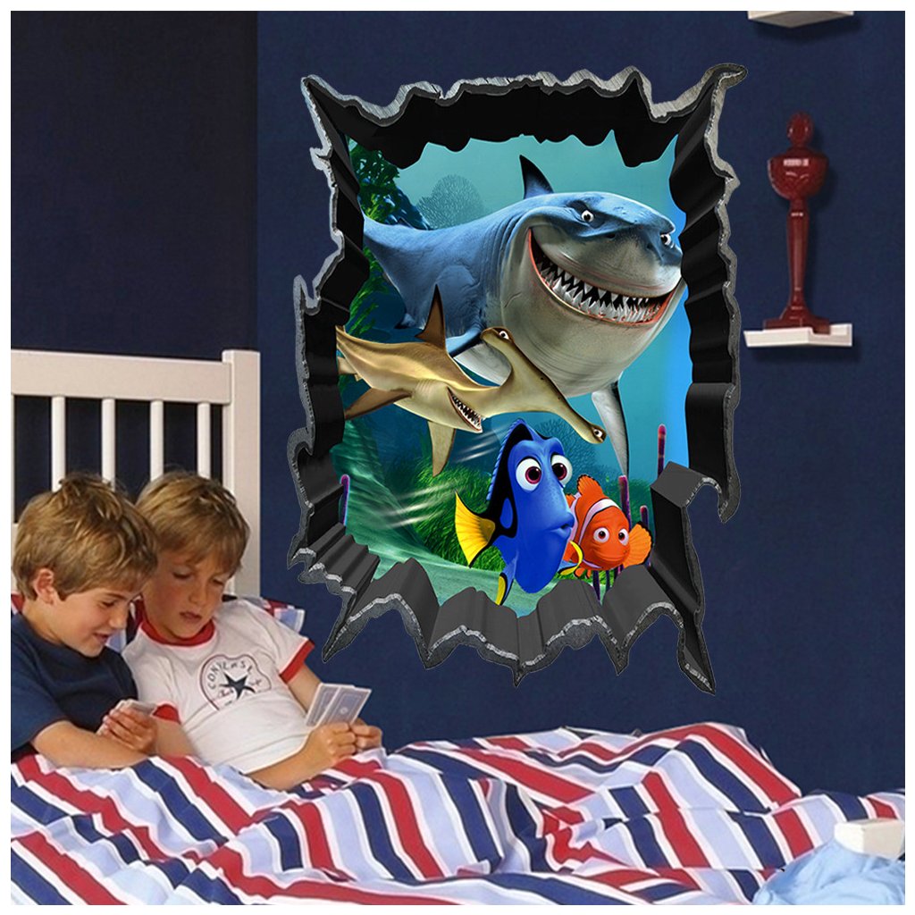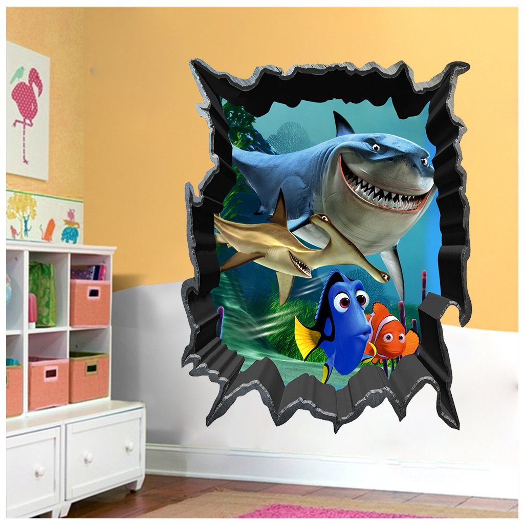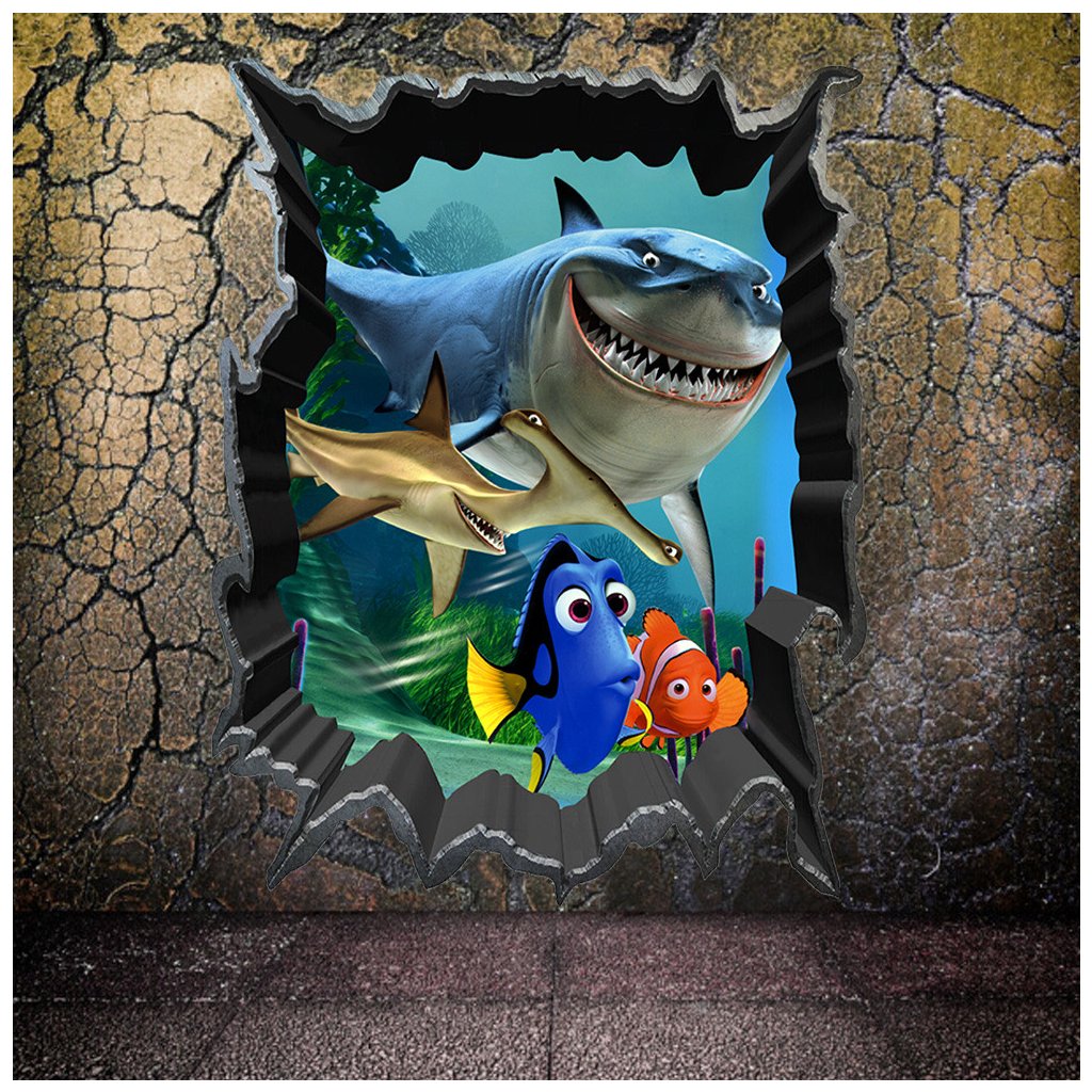 Krásná 3D samolepka s hlavnými hrdinami Nemo a Dory spoločne s ich vegetariánskymi kamarátmi - žralokmi.