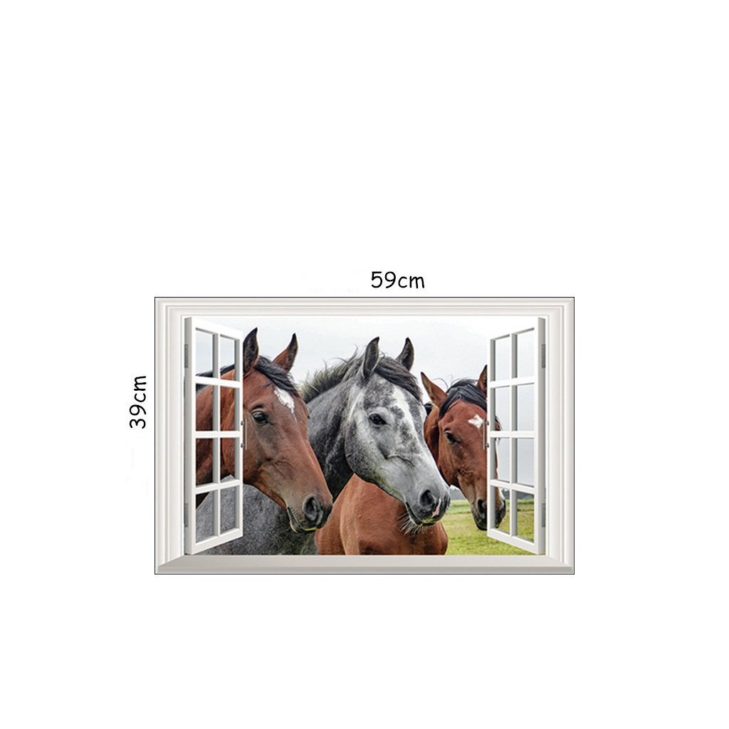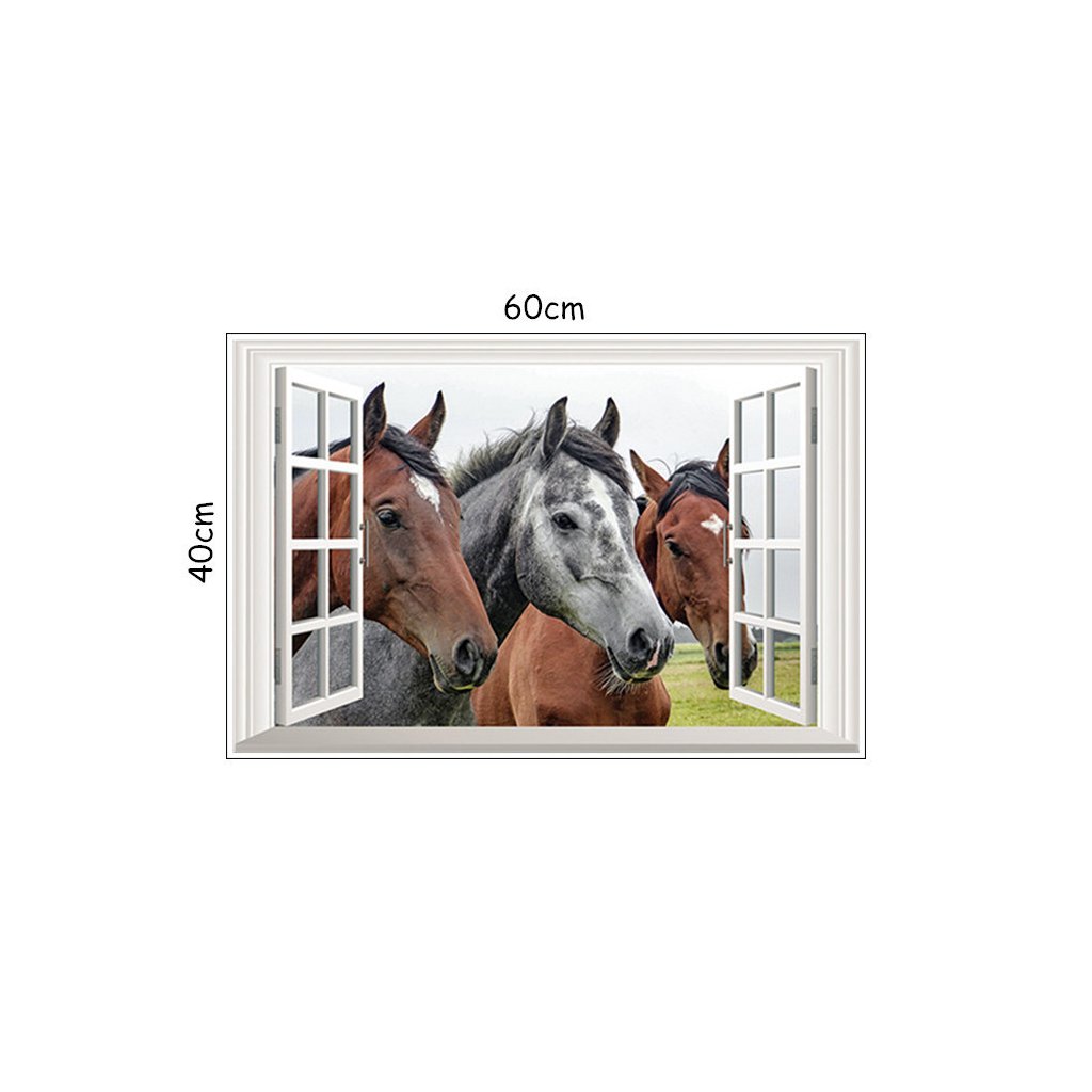 Samolepiaca dekorácia na stenu s motívom Koňa v tehlovom okne.