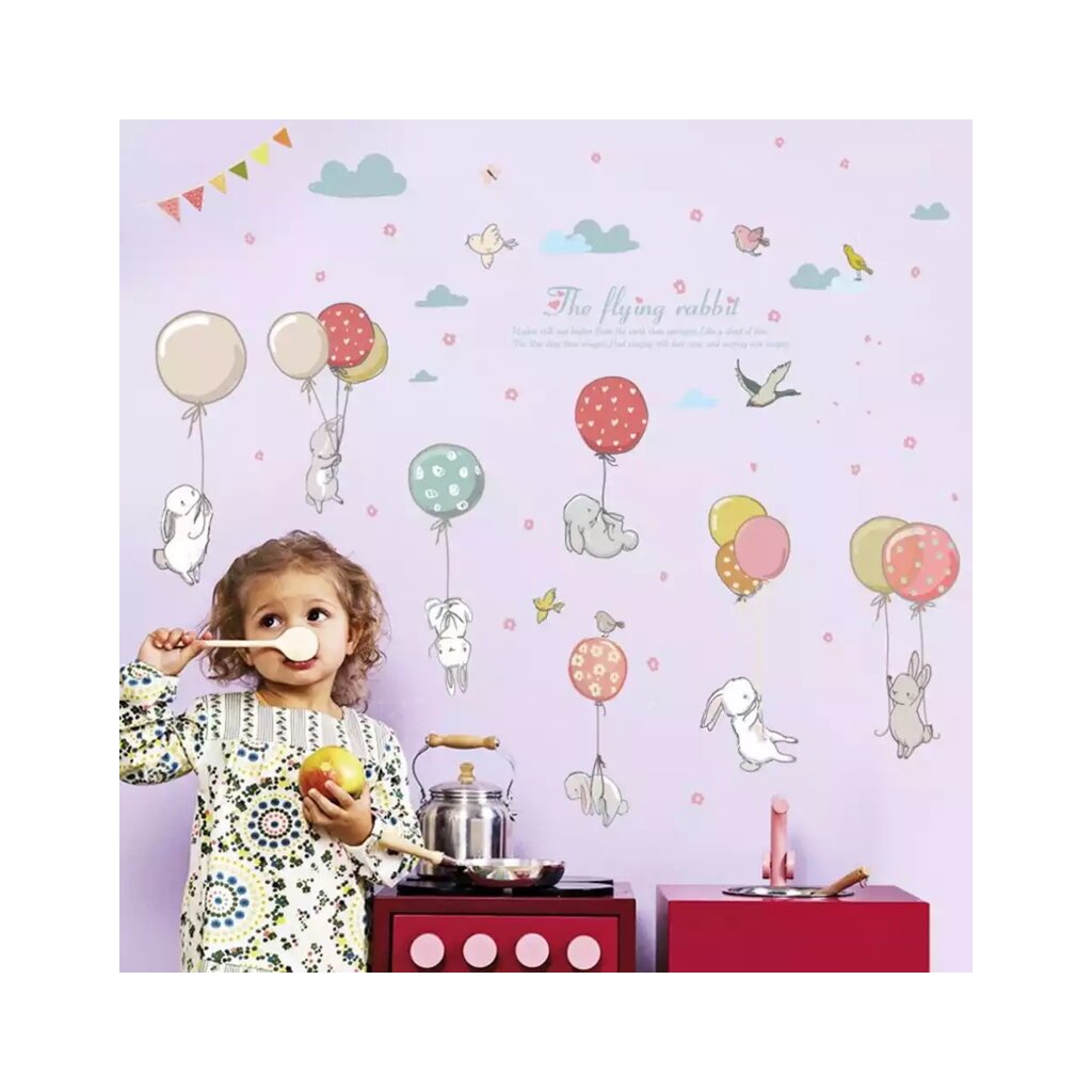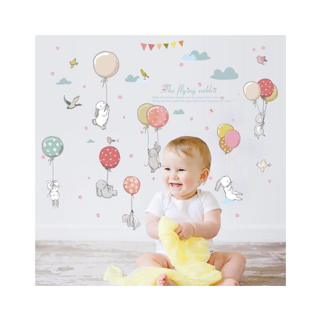 Táto originálna samolepiaca dekorácia na stenu Lietajúce králičky sa bude krásne vynímať na stene každej detskej izby. Táto krásna a pestrofarebná dekorácia bude dokonalou ozdobou každej izby.