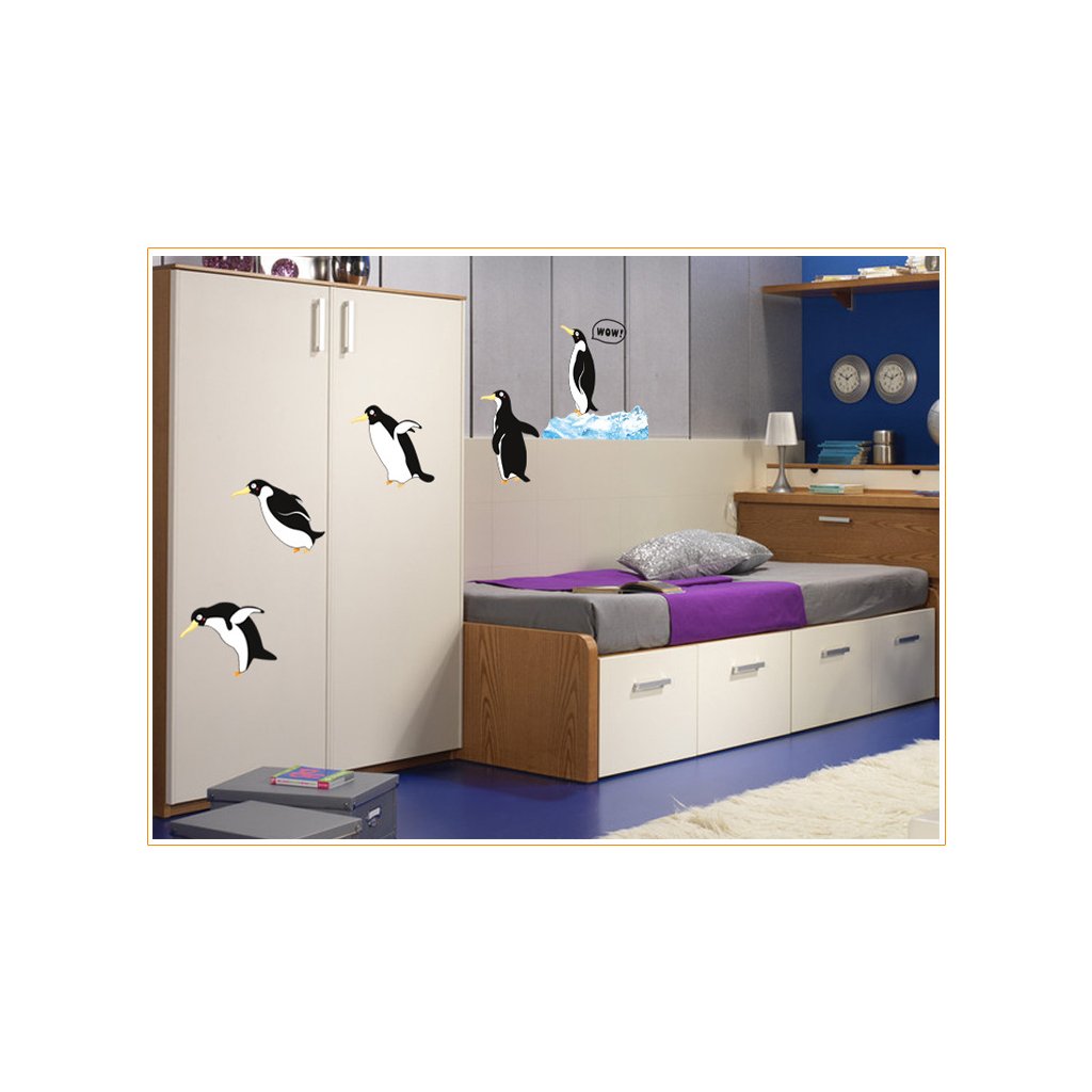 Tučniaci si vyrazili na výlet. Dokáže vaše dieťa vymyslieť mená pre všetkých 5 roztomilých tučniakov na stene svojej izby?
