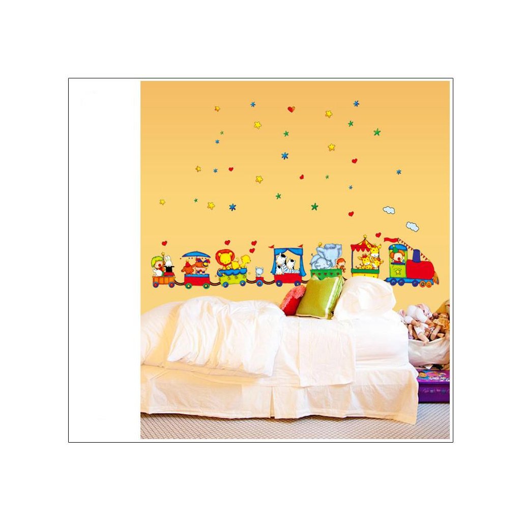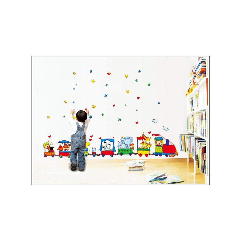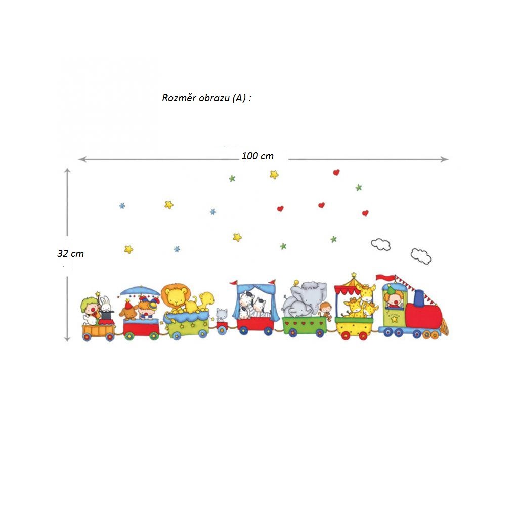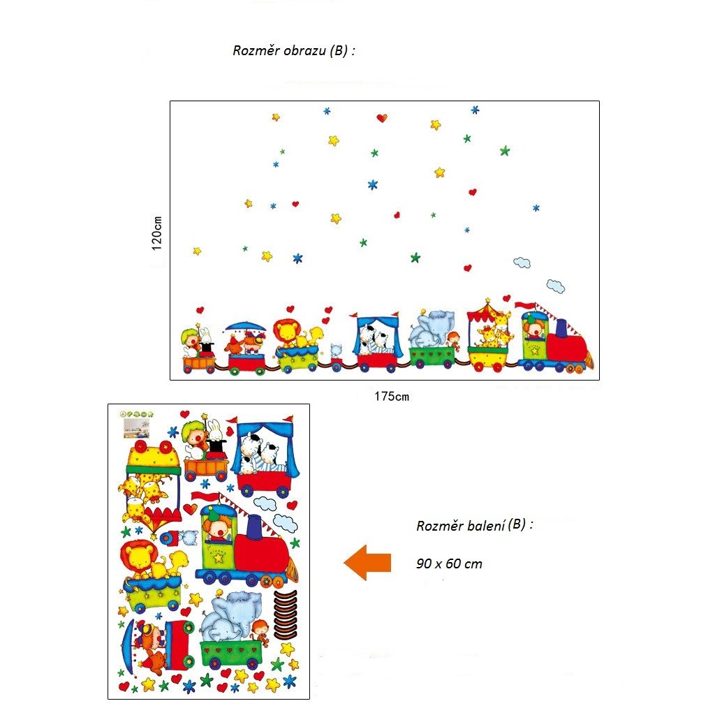 Zebry, opice, levy a mnoho ďalších roztomilých zvieratiek prichádza v cirkusovom vláčiku prebudiť fanáziu priamo do vašej detskej izby. Z komínu stúpa veľa malých nálepiek, takže o zábavu máte postarané.