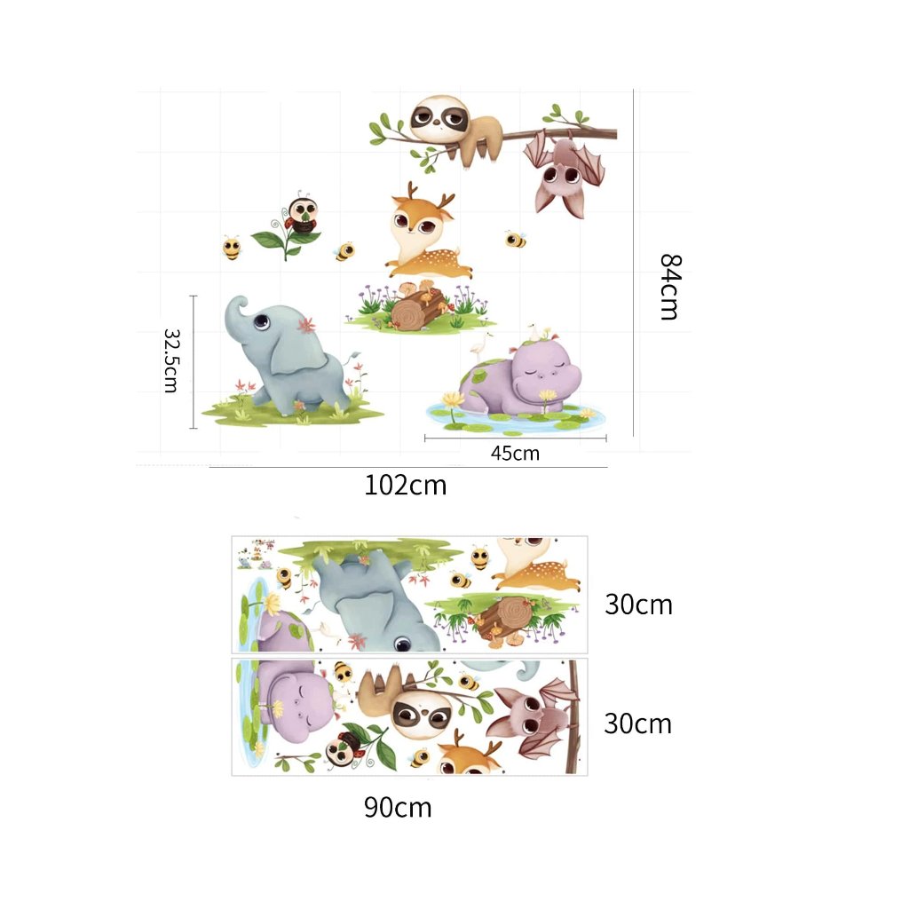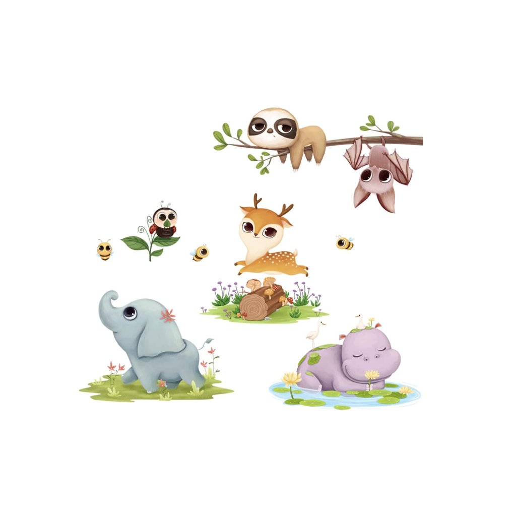 Samolepiaca dekorácia na stenu s motívom zvieratiek.
