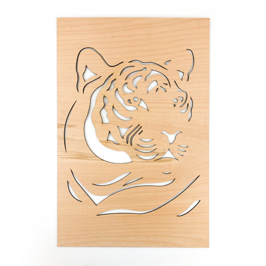 Táto originálna bytová drevená dekorácia Tiger bude perfektnou ozdobou na stene Vášho domova. Predstavovať tigra je asi zbytočné. Tiger je najväčšou žijúcou mačkovitou šelmou a jednou z najväčších šeliem vôbec. Zdanlivo kontrastný a nápadný kožuch je v skutočnosti vynikajúcim maskovaním, vďaka ktorému tigre splývajú s mihotavými tieňmi vo vysokej tráve, rákosí alebo lesným porastom. Indickými domorodcami bol označovaný ako posol bohov chrániacich stromy.