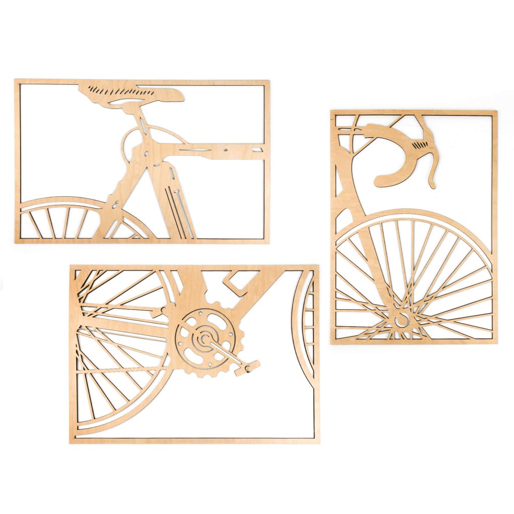 Táto originálna trojdielna bytová drevená dekorácia Bicykel sa bude krásne vynímať napríklad v obývacej izbe alebo v pracovni. Nemusíte byť priamo zapálený cyklista, aby Vás táto dekorácia uchvátila. Vydajte sa s nami na spanilú jazdu prírodou rovno z pohodlia Vášho domova.