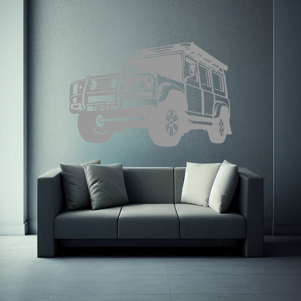Táto originálna samolepiaca dekorácia na stenu Auto Land Rover Defender sa bude skvele vynímať na stene v obývacej izbe alebo detskej izbičke každého fanúšika motorizmu. Land Rover Defender bezpochyby patrí medzi legendy automobilového sveta. Pokiaľ máte radi skôr terénne autá, tak potom táto samolepka je správnou voľbou.