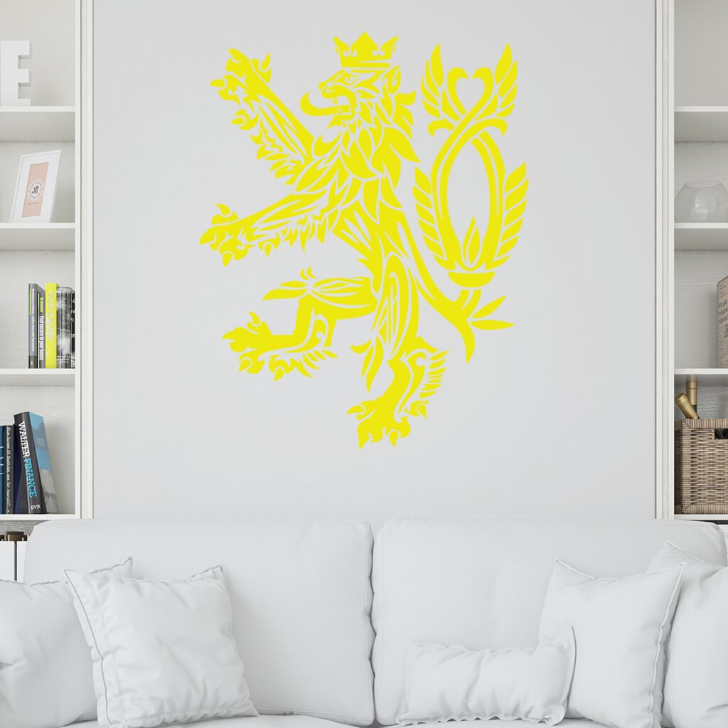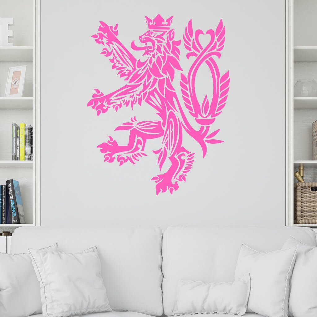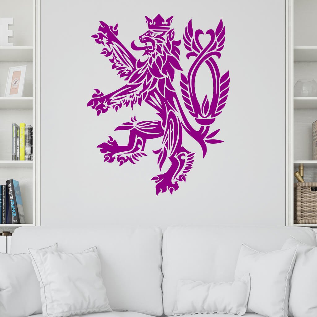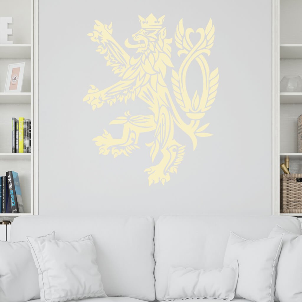 Táto originálna samolepiaca dekorácia na stenu Český lev oživí stenu ktorejkoľvek izby Vášho domova. Lev ako symbolický kráľ zvierat vyjadruje rytierske cnosti, odvahu, silu a statočnosť. Táto figúra je na malom aj veľkom štátnom znaku Českej republiky.