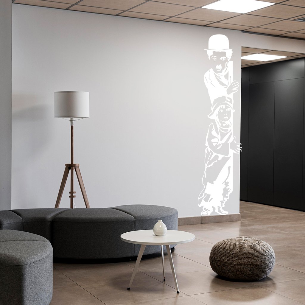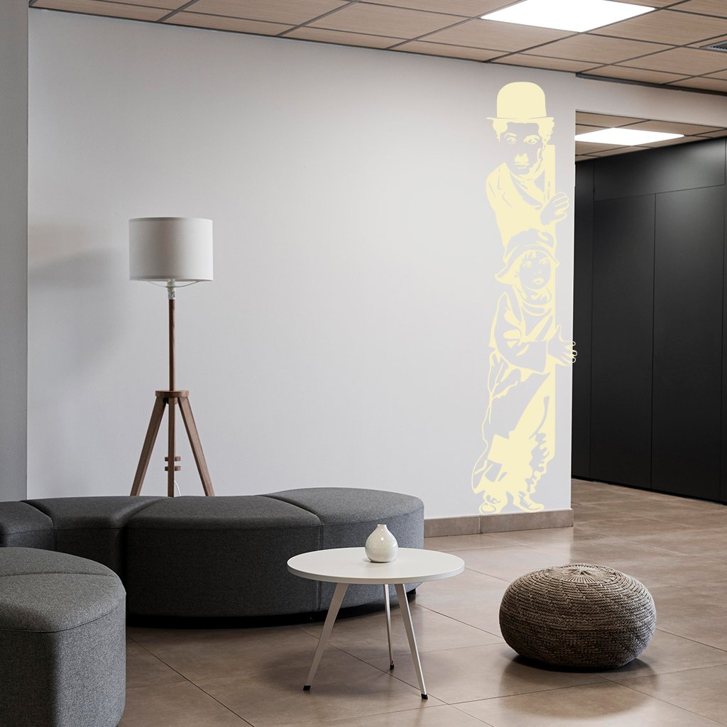 Oživte si svoju stenu s touto úžasnou samolepkou Charlieho Chaplina. Charlie Chaplin bol britský herec, ktorý patril k najslávnejším svetovým filmovým tvorcom 20. storočia. Jeho nemý film The Kid je nádhernou zmesou drámy a komédie a bol prvým celovečerným filmom Chaplina. Teraz môžete mať jeho ikonickú postavu na svojej stene, či už ste milovníkom Charlieho Chaplina alebo jednoducho chcete pridať do svojho interiéru niečo neobvyklé.