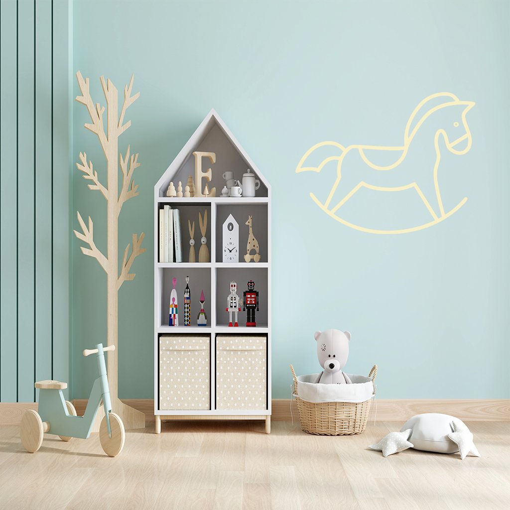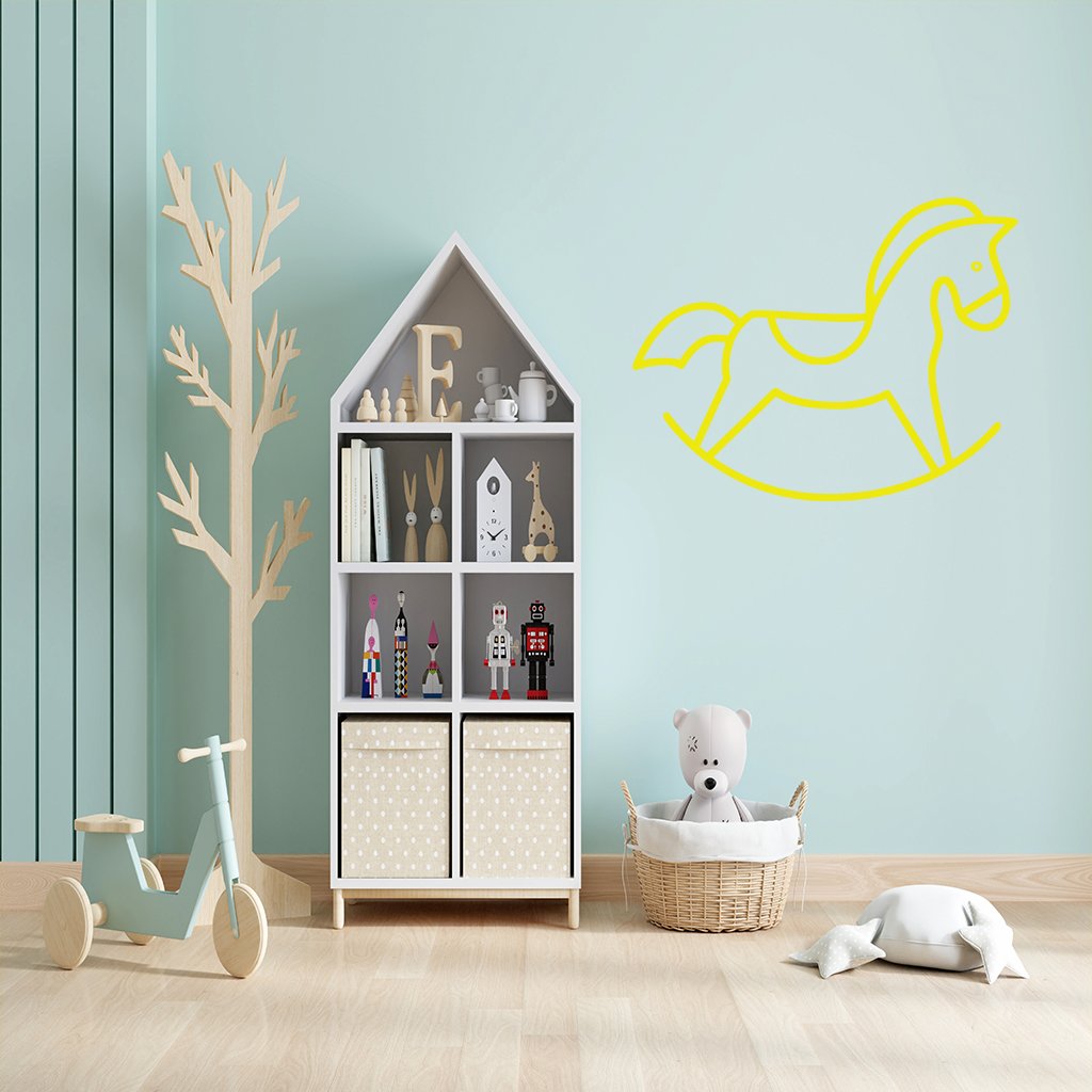 Táto originálna samolepiaca dekorácia na stenu Hojdací koník sa bude perfektne vynímať na stene v detskej izbe, ocenia ju hlavne Tí najmenší. Hojdacie koníky mal doma snáď každý, aj naši rodičia a starí rodičia. Teraz môžete mať hojdacieho koňa aj na stene a zútulniť si tak kút detskej izby.