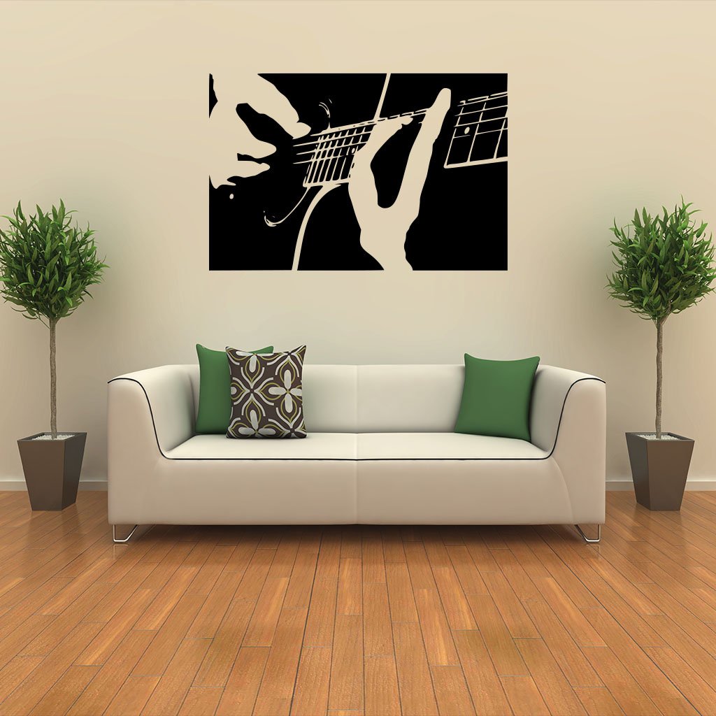 Táto originálna samolepiaca dekorácia na stenu Hra na gitaru sa hodí na stenu obývacej izby, detskej izby, spálne, pracovne, skúšobne kapely... Tento gitarista je skrátka ideálna voľba pre spestrenie steny každého milovníka hudby. Pri pohľade na túto modernú samolepku na stenu Vám okamžite v ušiach začne znieť Vaša obľúbená pesnička.