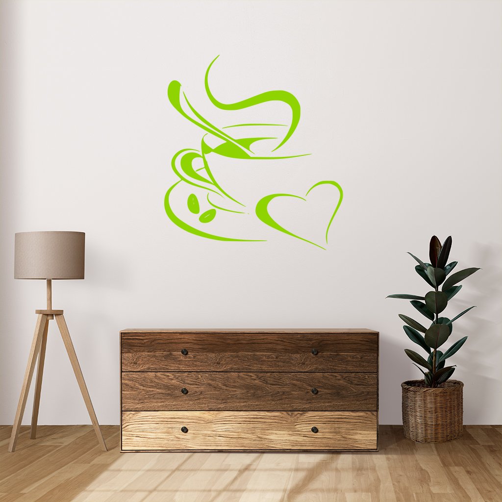 Táto originálna samolepiaca dekorácia na stenu Láska ku káve sa bude perfektne vynímať na stene malej kaviarničky alebo vo Vašej kuchyne. Je jedno či pijete Espresso, Latte Macchiato, Cappuccino alebo Americano, pokiaľ milujete kávu nesmie táto samolepka u Vás doma chýbať.