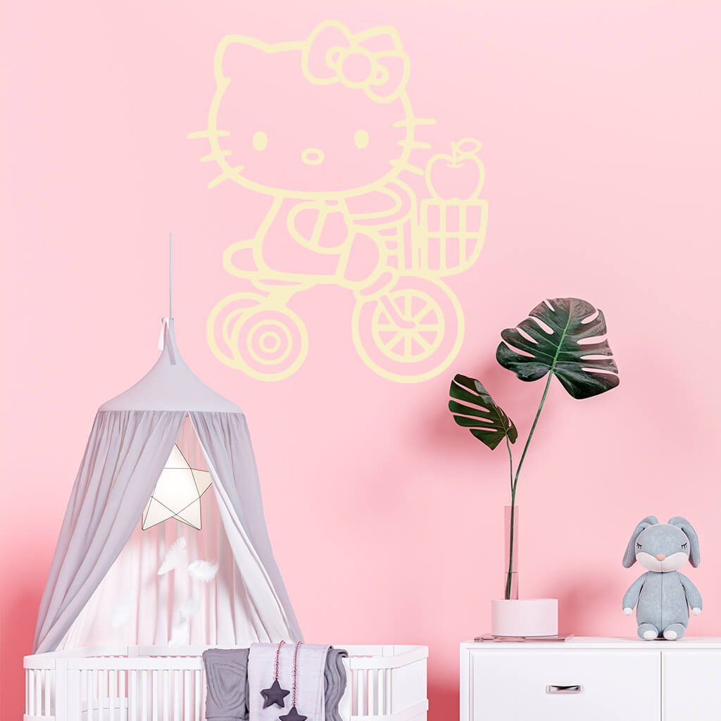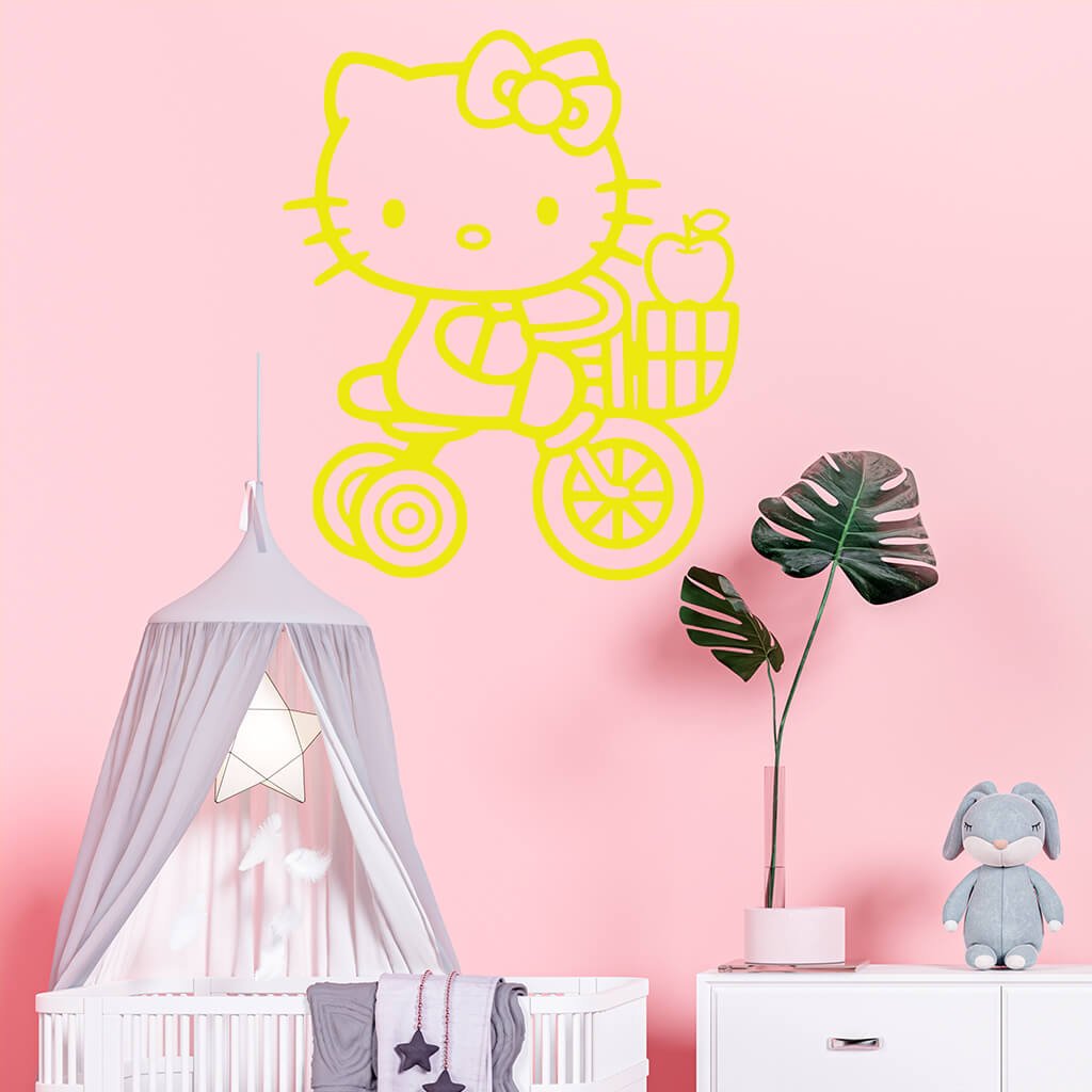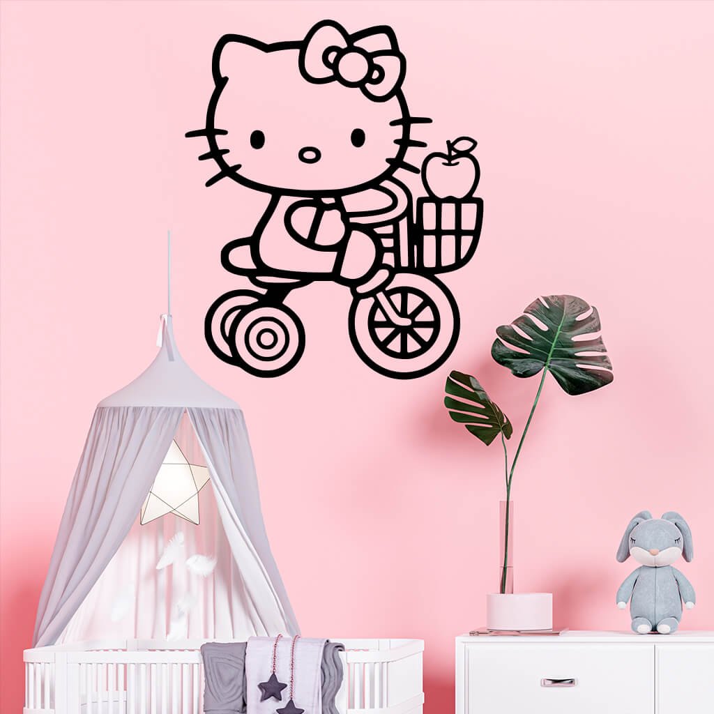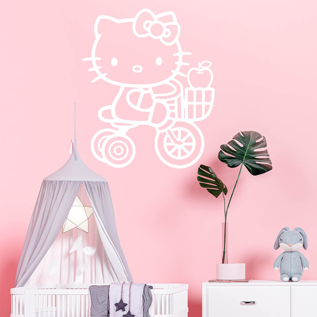 Táto originálna samolepiaca dekorácia na stenu Mačička Hello Kitty bude krásnou ozdobou každej detskej izby, ktorú ocenia predovšetkým dievčatká. Hello Kitty je kreslená postavička malej roztomilé mačky s mašličkou na hlave. Mačičku Hello Kitty ale nájdeme aj v najrôznejších animovaných seriáloch, komiksoch, a dokonca aj v celovečerných filmoch.