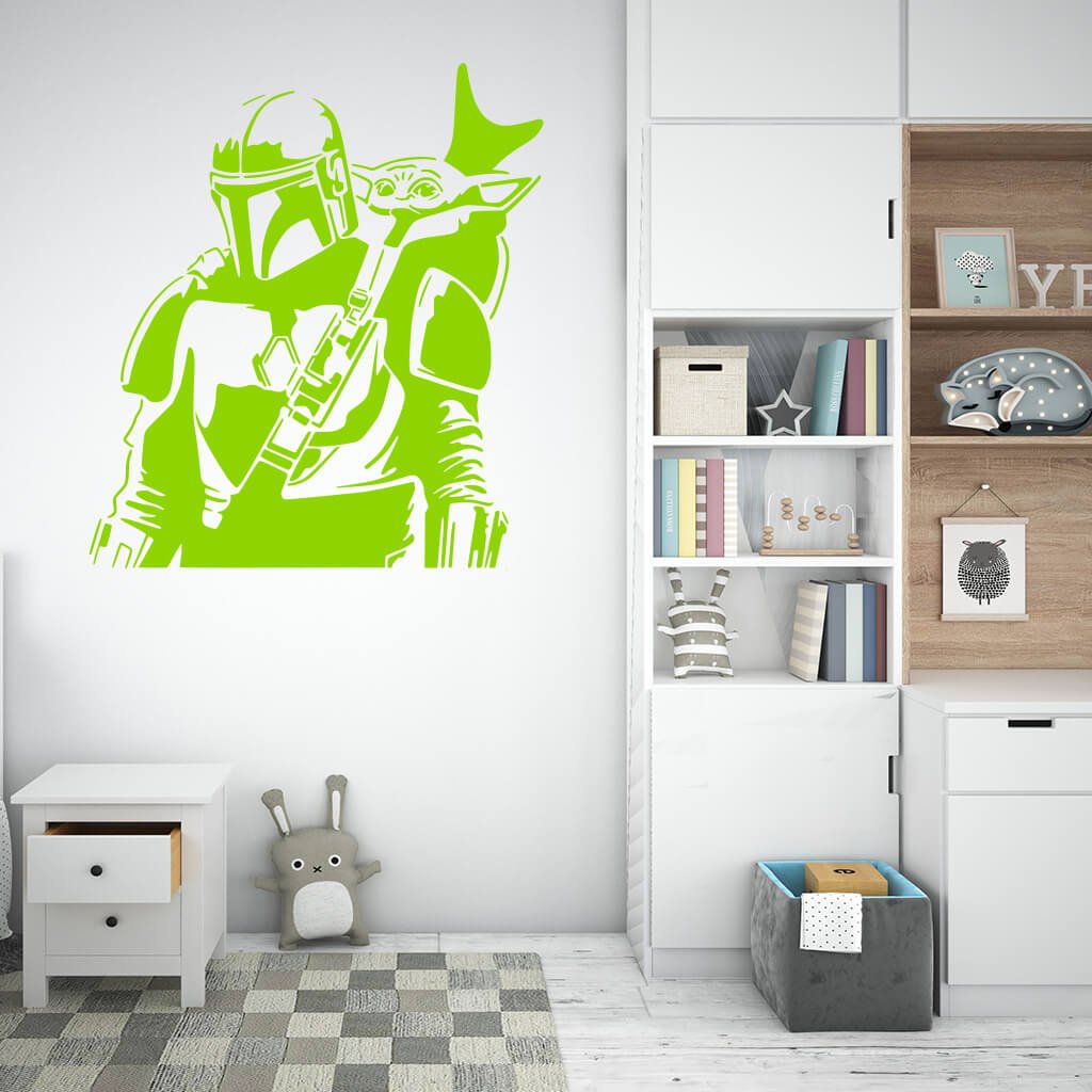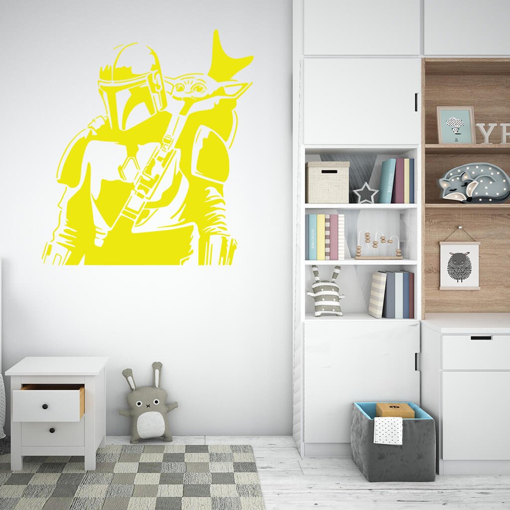 Táto originálna samolepiaca dekorácia na stenu Mandalorian a Grogu si nájde svoje miesto na stene každého fanúšika Hviezdnych vojen Star Wars. Po páde Impéria, ale ešte pred vznikom Prvého rádu, cestuje po najvzdialenejších kútoch galaxie osamelý nájomný lovec známy ako Din Djarin z vojnového rádu Mandalorianov. Pri svojej ceste spozná malého tvora menom „Grogu“ a snaží sa ho ochrániť pred Impériom aj inými nepriateľmi, ktorí ho chcú využiť vo svoj prospech.