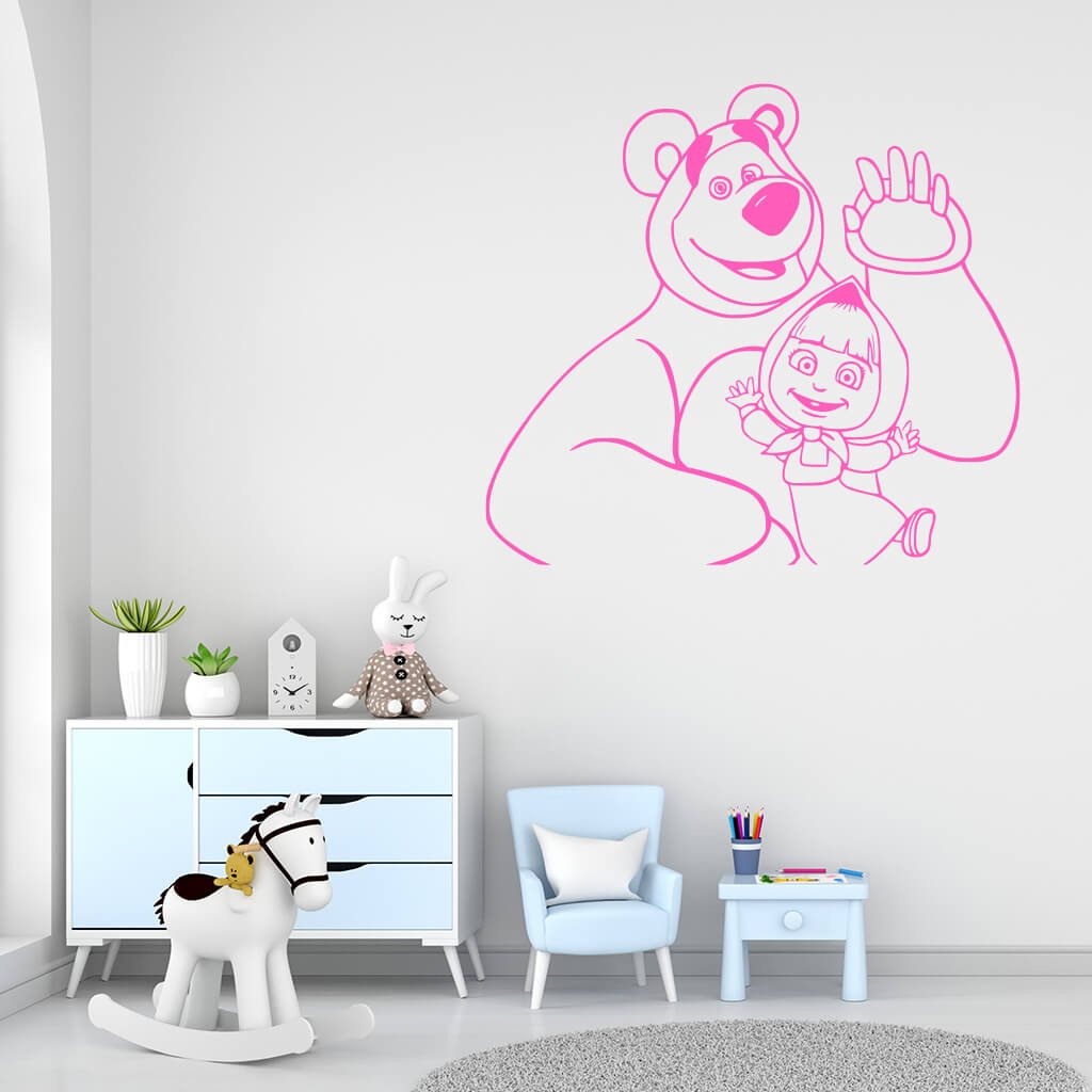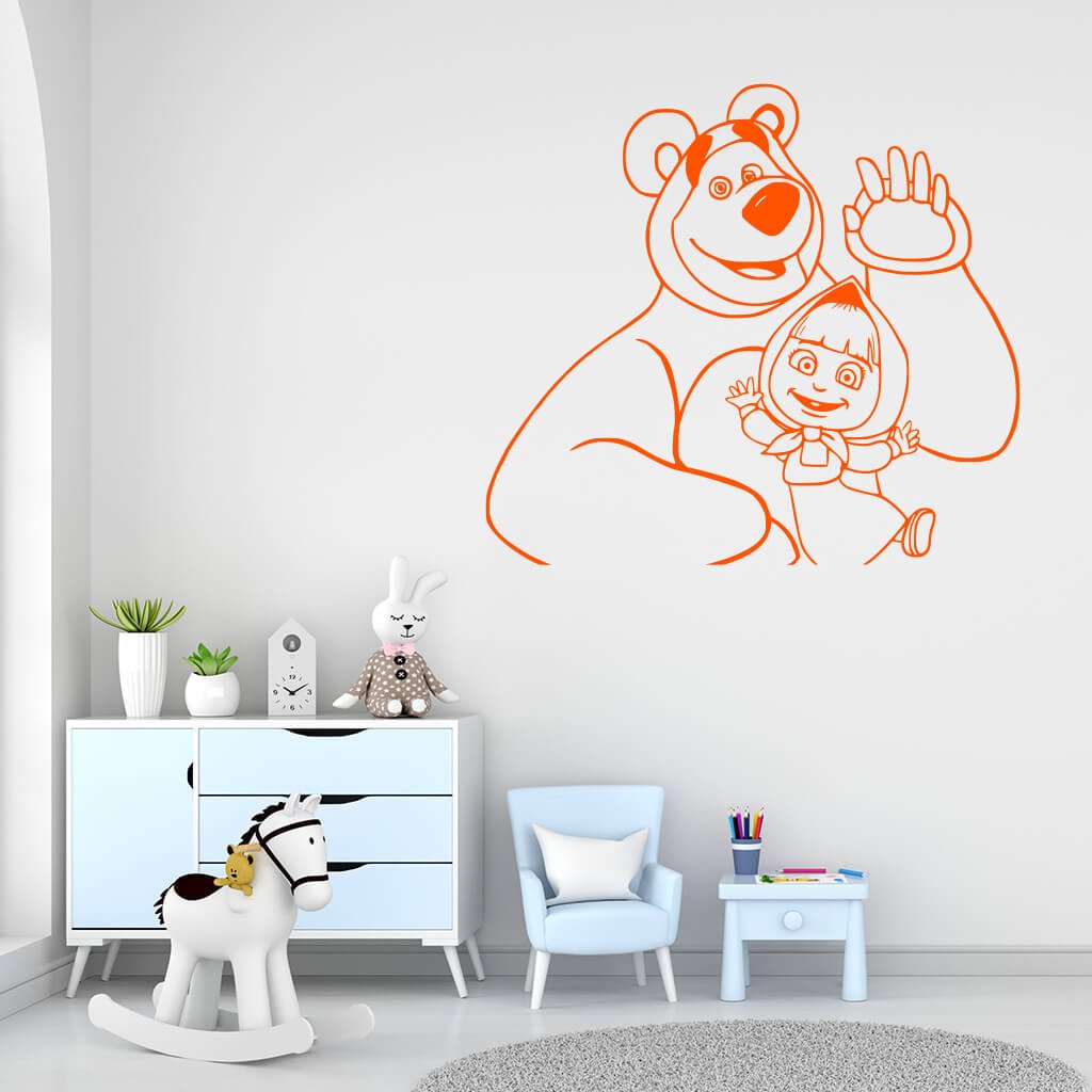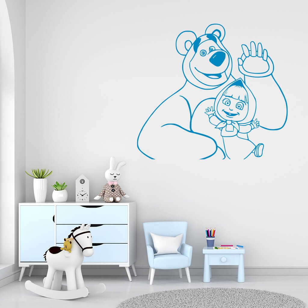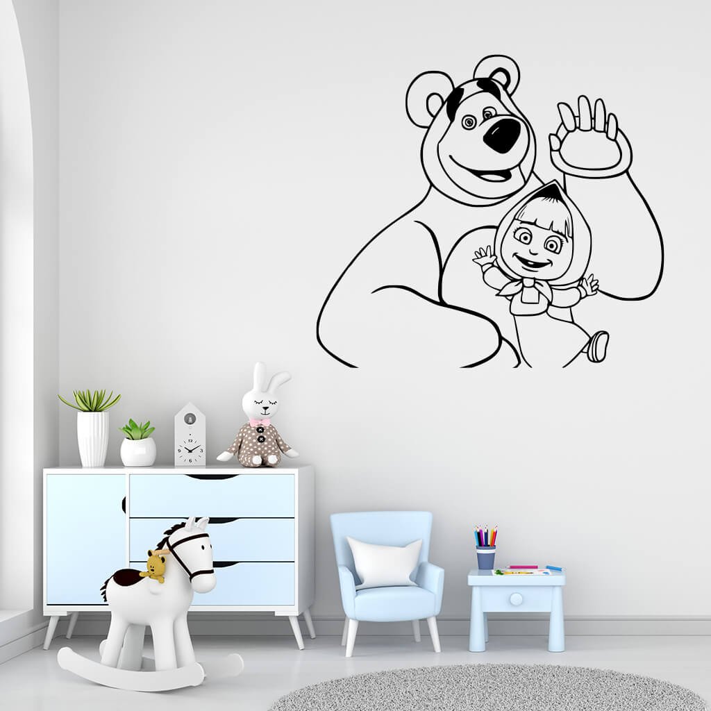 Táto originálna samolepiaca dekorácia na stenu Máša a medveď, bude skvelou ozdobou každej detskej izby a ocenia ju ako dievčatá, tak aj chlapci. Medveď, bývalý cirkusový artista, prichádza do lesa, aby si užíval pokojný život. Avšak, jeho plány sa zmenia po tom, čo sa zoznámia s neskrotným dievčatkom menom Máša, ktorá tu žije so svojimi kamarátmi - prasiatkom, kozou a psom.