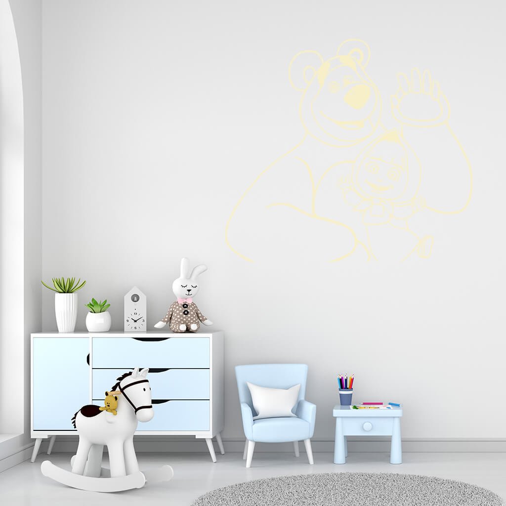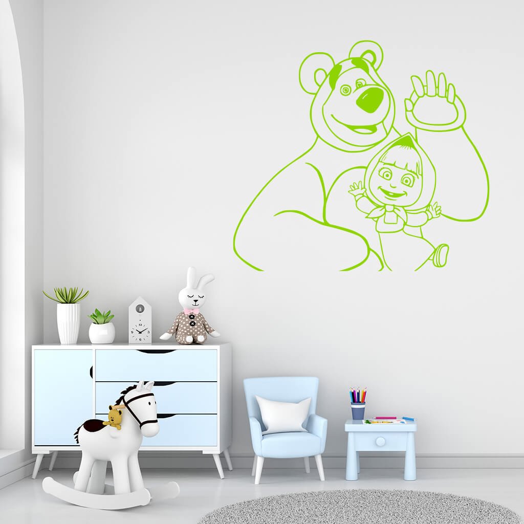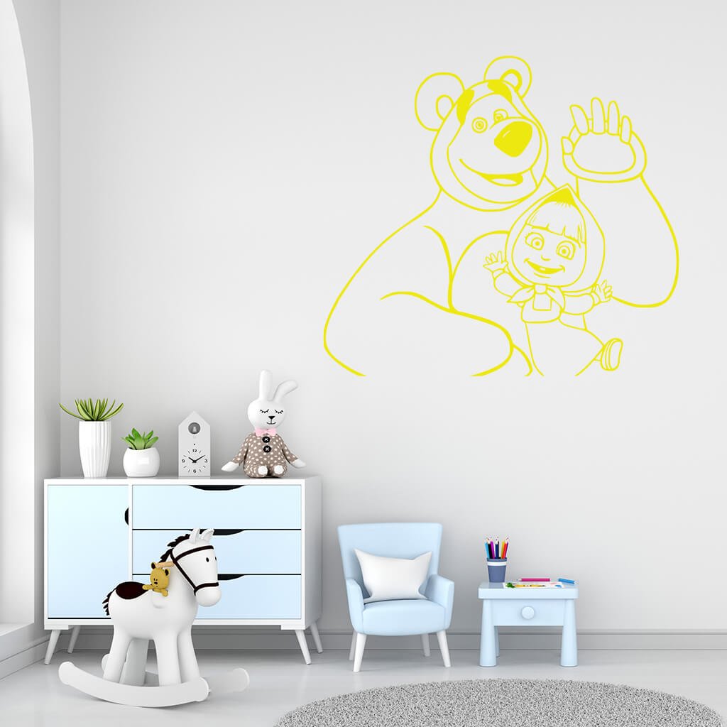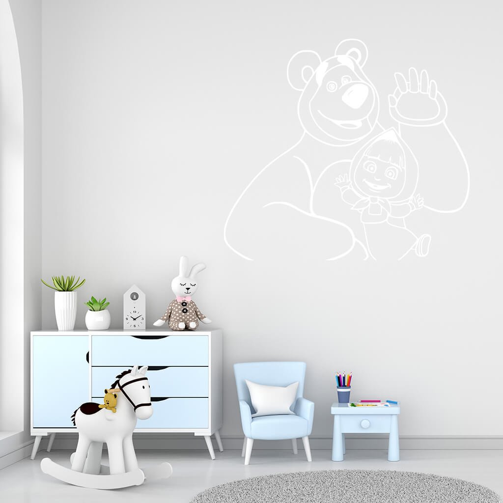 Táto originálna samolepiaca dekorácia na stenu Máša a medveď, bude skvelou ozdobou každej detskej izby a ocenia ju ako dievčatá, tak aj chlapci. Medveď, bývalý cirkusový artista, prichádza do lesa, aby si užíval pokojný život. Avšak, jeho plány sa zmenia po tom, čo sa zoznámia s neskrotným dievčatkom menom Máša, ktorá tu žije so svojimi kamarátmi - prasiatkom, kozou a psom.