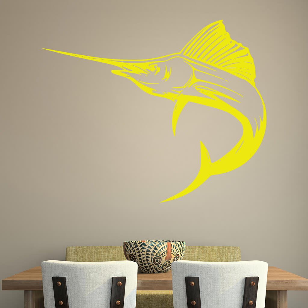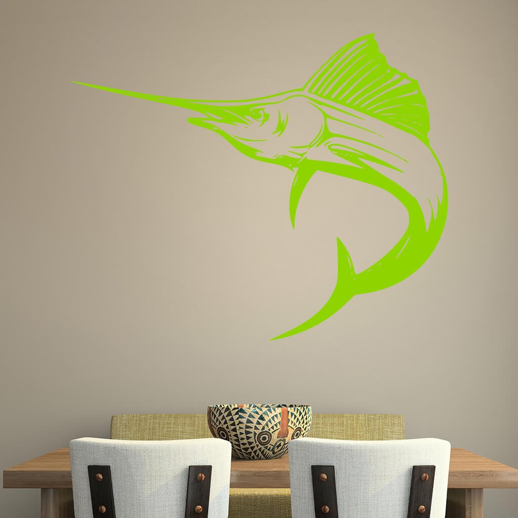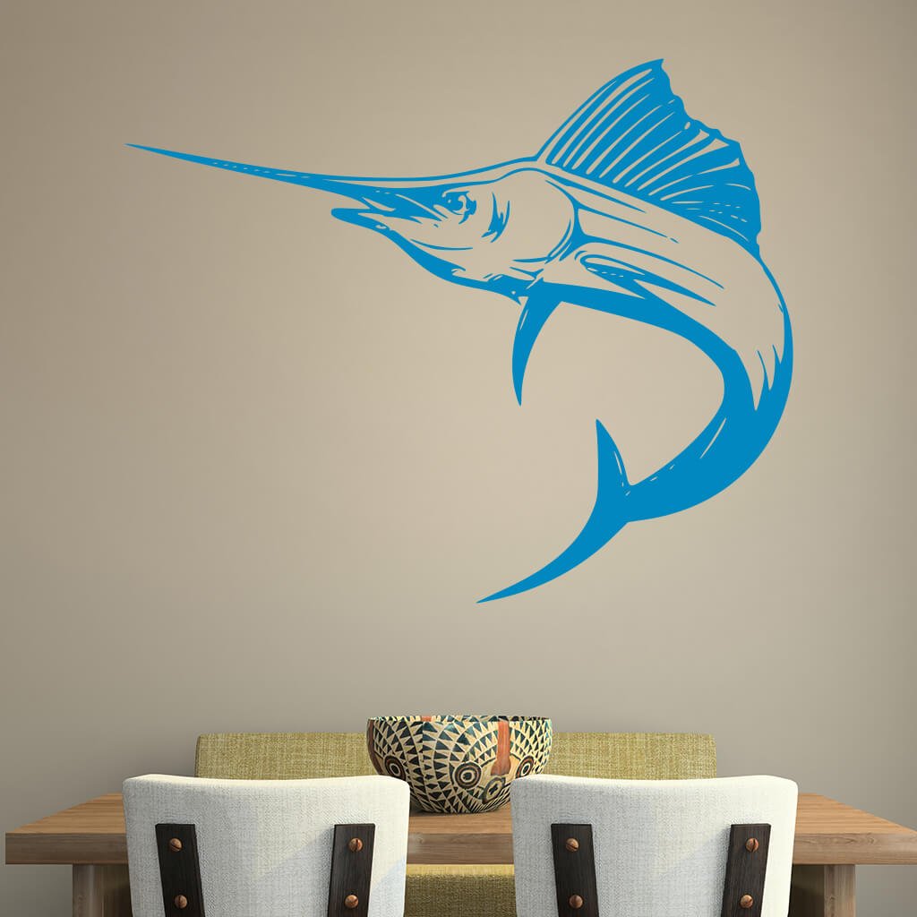 Táto originálna samolepiaca dekorácia je na stenu Mečúň je ideálnou voľbou pre milovníkov vodného sveta, rybárov a všetkých veľkých i malých nadšencov. Samolepku je možné umiestniť do detskej izby, obývacej izby, kúpeľne alebo na zadné sklo auta. Mečúň je ostňoplutvá ryba s hornou čeľusťou predĺženou v typický mečovitý výbežok. Ide o jediný druh z čeľade mečiarovitých a tvorí tak celú túto čeľaď. Má typický mečovitý štít vďaka hornej čeľusti, ktorá je pretiahnutá vo výbežok dlhý asi 1/3 tela. Tento výbežok je schopný preraziť aj bok menšej lode.
