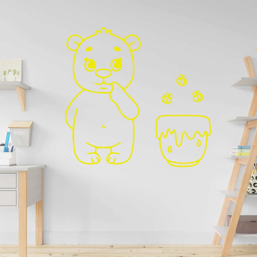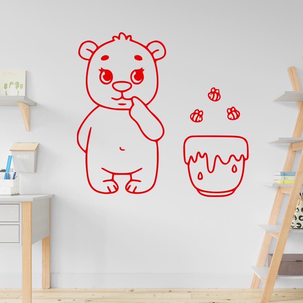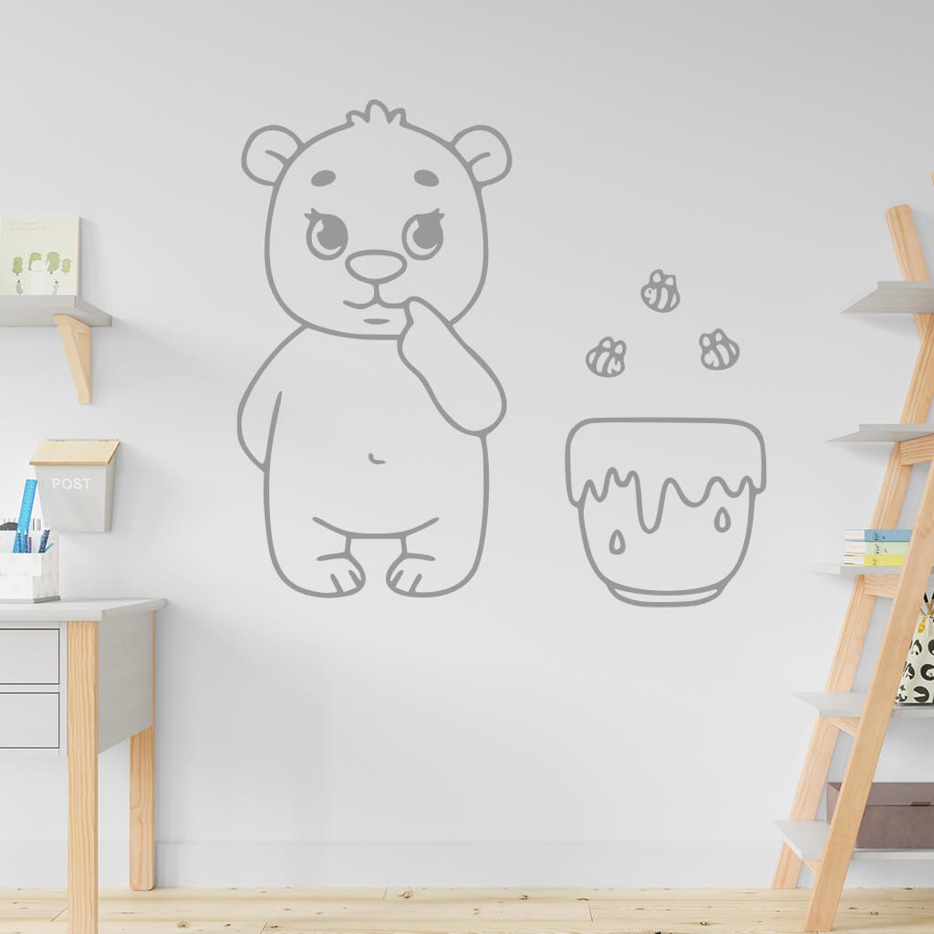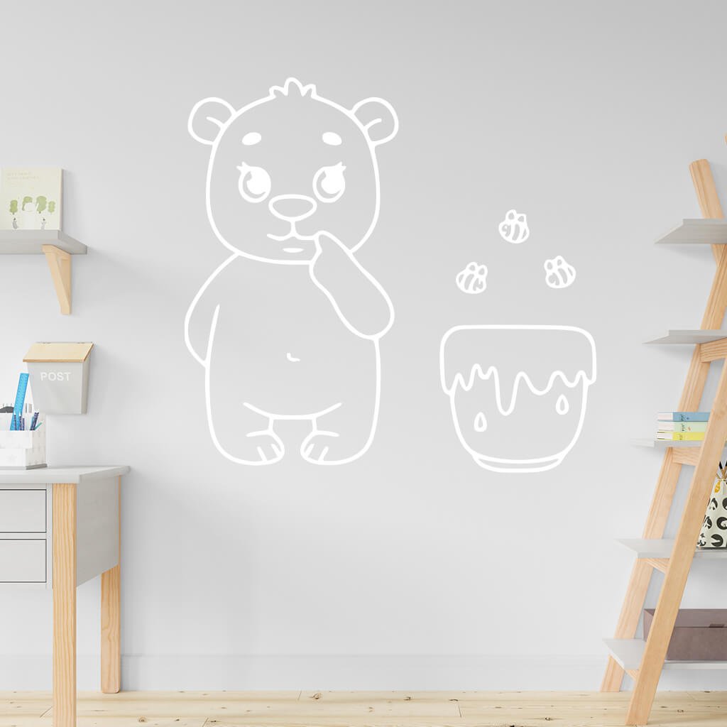 Táto originálna samolepiaca dekorácia na stenu Medvedík s medom sa skvele hodí do detskej izby. Vytvorte v detskej izbičke útulnú atmosféru s touto roztomilou samolepkou, ktorá urobí radosť každému malému obdivovateľovi medvedíkov.