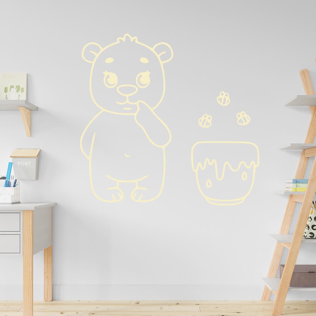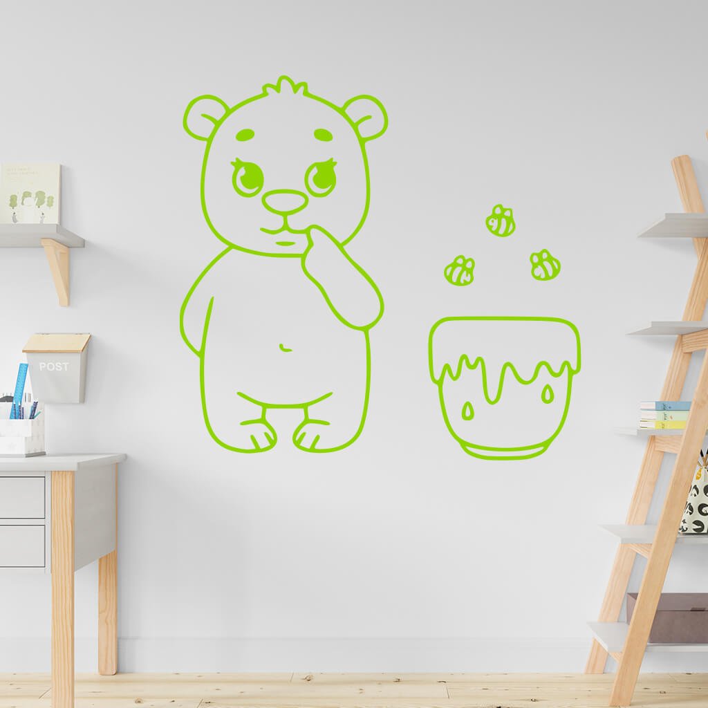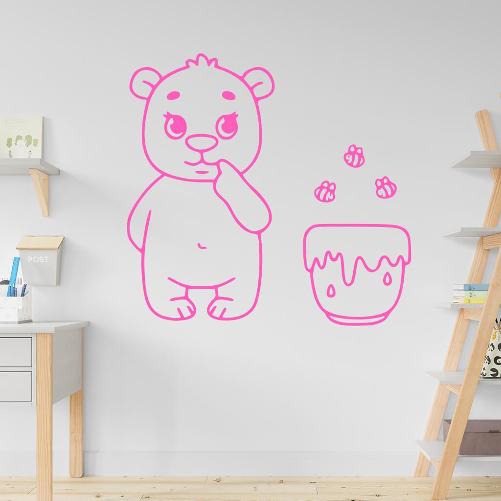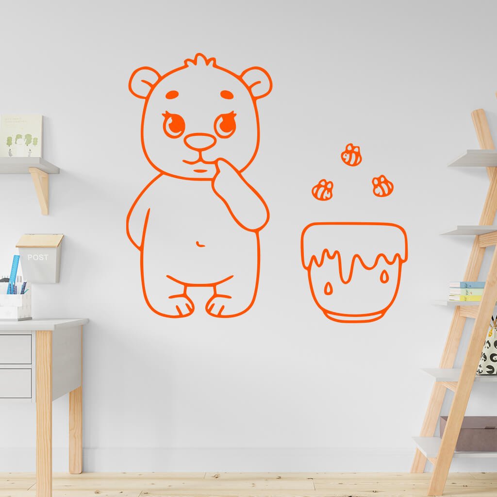 Táto originálna samolepiaca dekorácia na stenu Medvedík s medom sa skvele hodí do detskej izby. Vytvorte v detskej izbičke útulnú atmosféru s touto roztomilou samolepkou, ktorá urobí radosť každému malému obdivovateľovi medvedíkov.