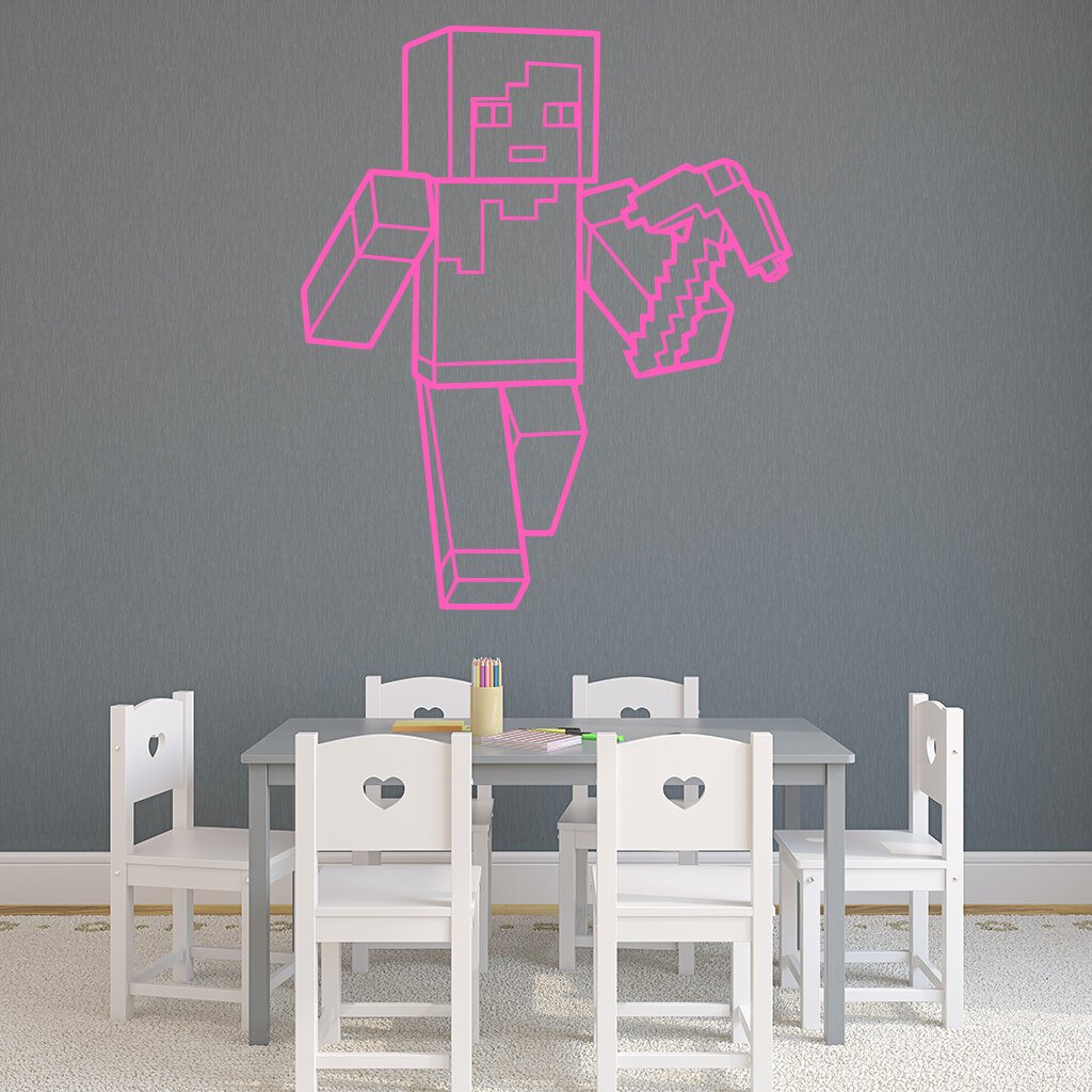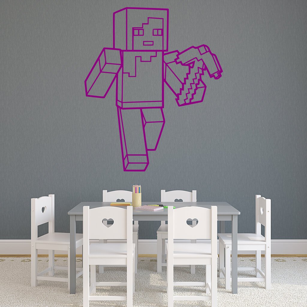 Táto originálna samolepiaca dekorácia na stenu Minecraft s krompáčom ​​je ideálnym doplnkom pre vašu izbu. Táto samolepka na stenu je inšpirovaná populárnou počítačovou hrou Minecraft, ktorá sa odohráva v otvorenom svete plnom neobmedzených možností. V tejto hre je pes super parťákom, ktorý bráni svojho hráča. Oživte si svoj hráčsky priestor a nechajte sa uniesť do sveta Minecraftu.