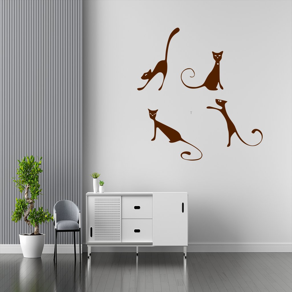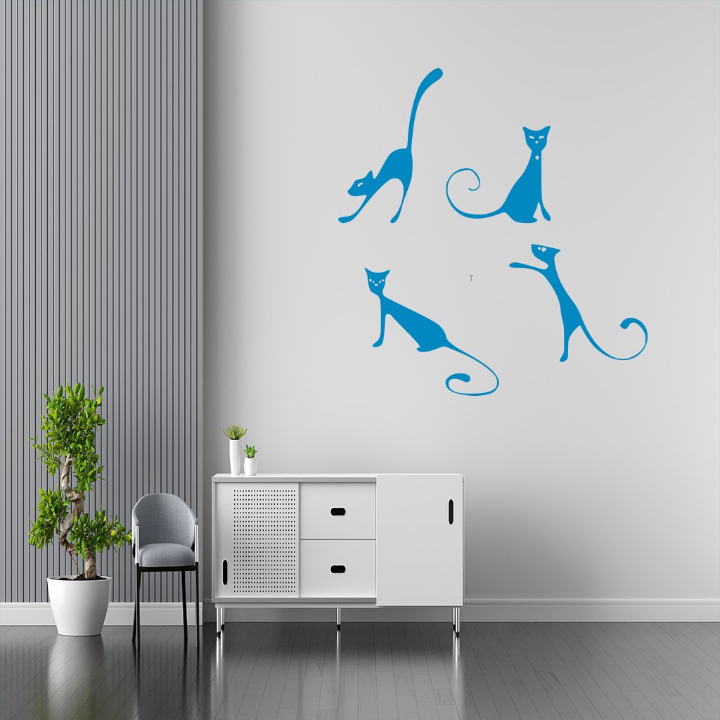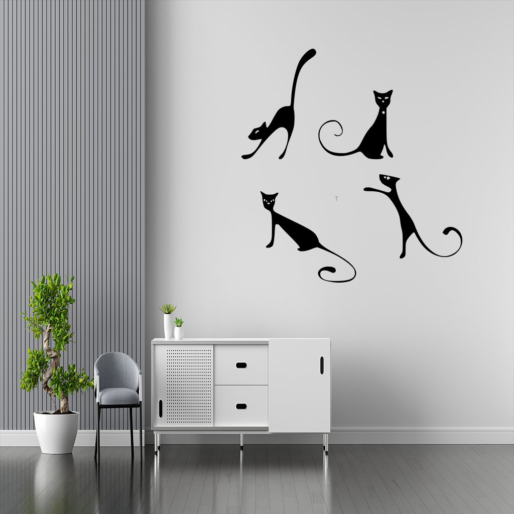 Táto originálna samolepiaca dekorácia na stenu Nespútané mačičky sa bude krásne vynímať na stene obývacej izby, spálne alebo dievčenskej izby. Mačky patria k najobľúbenejším domácim miláčikom, tak prečo túto samolepku nemať doma, určite si ju obľúbia ako majitelia mačiek, tak aj ich milovníci.