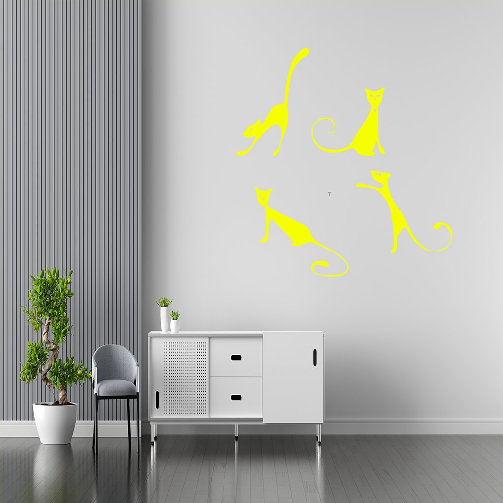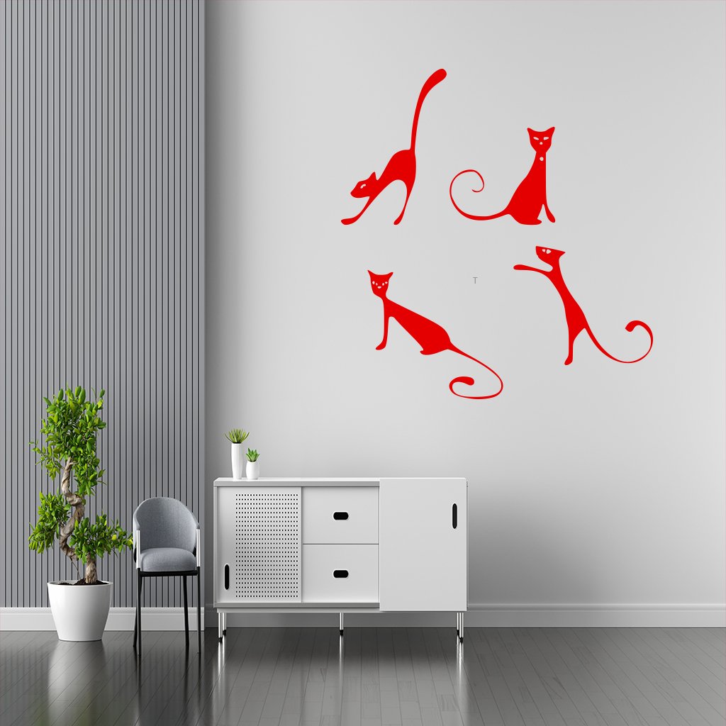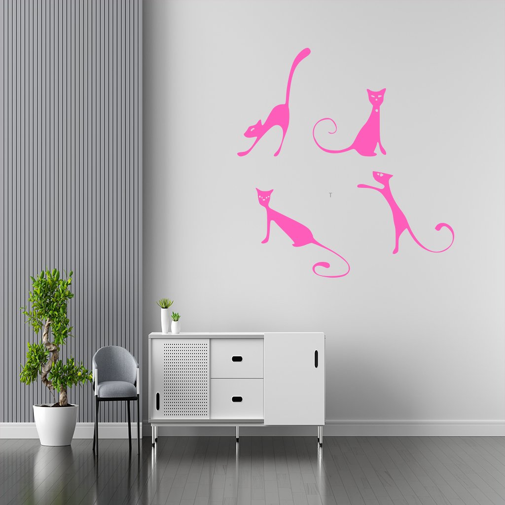 Táto originálna samolepiaca dekorácia na stenu Nespútané mačičky sa bude krásne vynímať na stene obývacej izby, spálne alebo dievčenskej izby. Mačky patria k najobľúbenejším domácim miláčikom, tak prečo túto samolepku nemať doma, určite si ju obľúbia ako majitelia mačiek, tak aj ich milovníci.