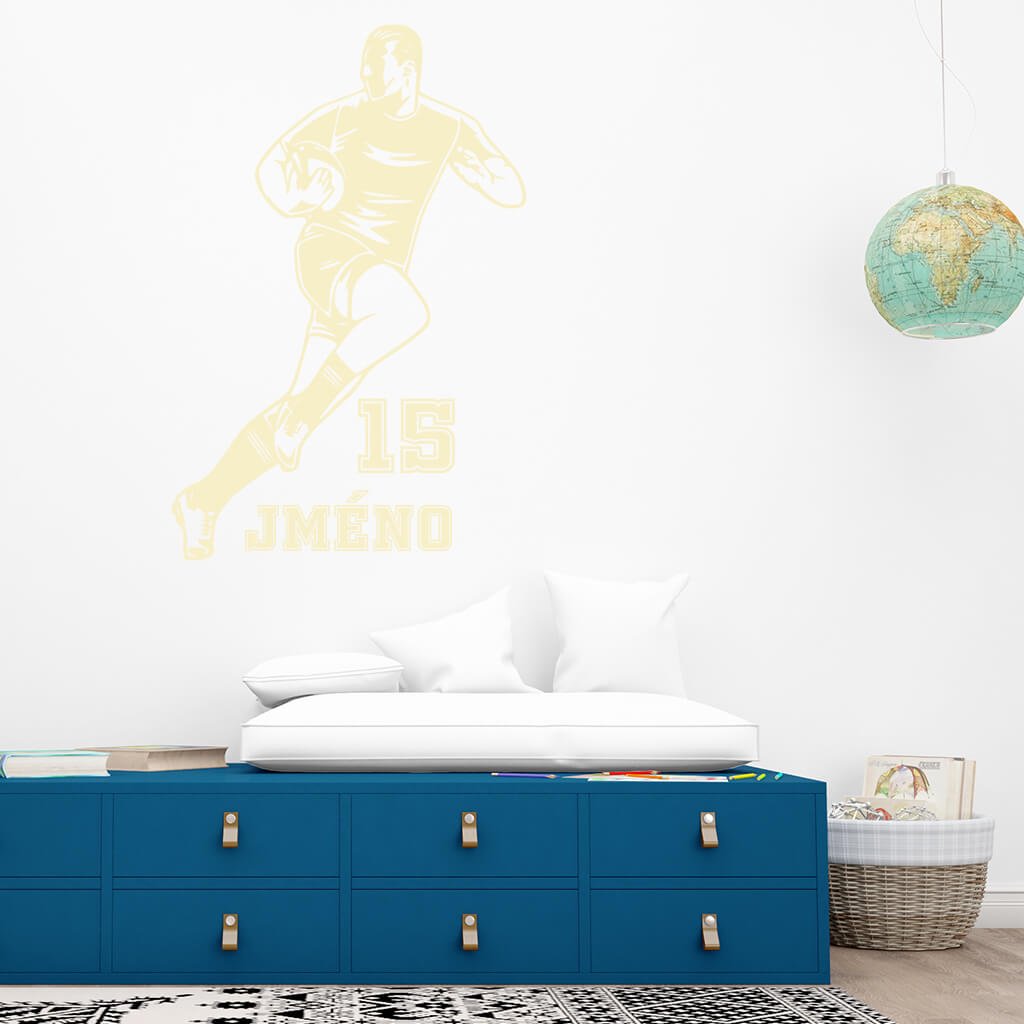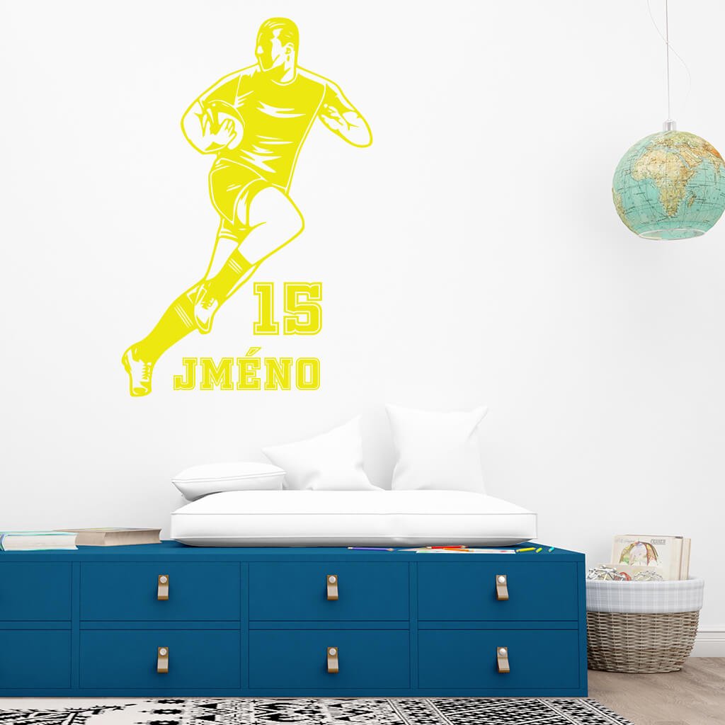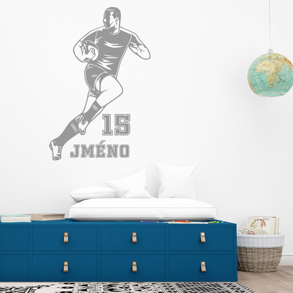 Táto originálna samolepiaca dekorácia na stenu Ragbista s menom sa bude skvele vynímať v detskej izbe, pracovni, obývacej izbe ale je vhodná aj na nalepenie na nábytok, sklo, či do výloh športovísk. Jej dizajn je jedinečný a zaistí, že vaše steny budú mať toho správneho športového ducha. Ragby je šport, ktorý stojí na rýchlosti, sile a komplexných schopnostiach. Je to tvrdý, ale napriek tomu férový súboj, telo na telo.