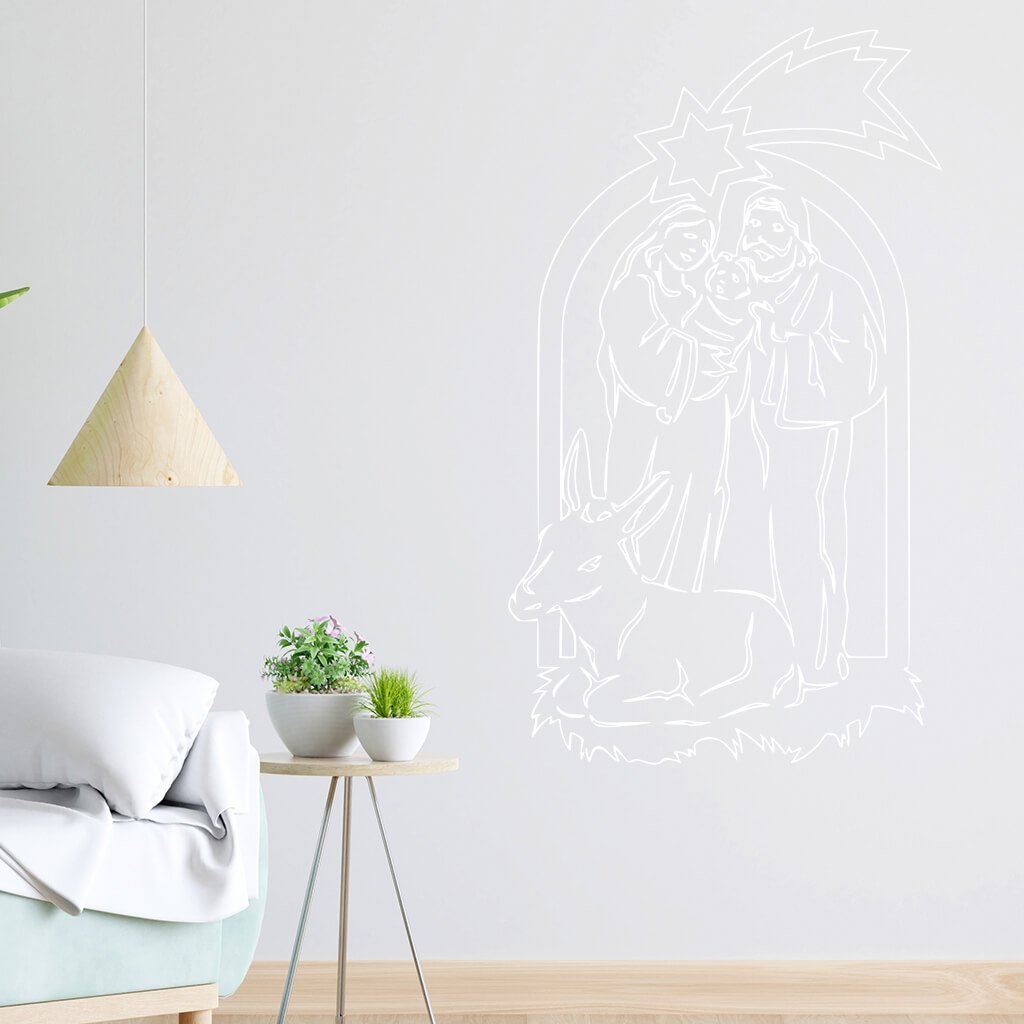 Táto originálna samolepiaca dekorácia na stenu Svätá rodina hravo oživí každú stenu Vášho domova. Skvele sa bude vynímať v obývacej izbe, spálni aj pracovni. Túto samolepku si môžete nalepiť aj na sklo, či okno. Tento dizajn Svätej rodiny predstavuje v kresťanstve rodinu, tvorenú Pannou Máriou, svätým Jozefom a Ježišom Kristom. Najmä v rímskokatolíckej cirkvi je uvádzaná ako najlepší príklad lásky, cnosti a svornosti a vzor pre život všetkých katolíckych rodín.