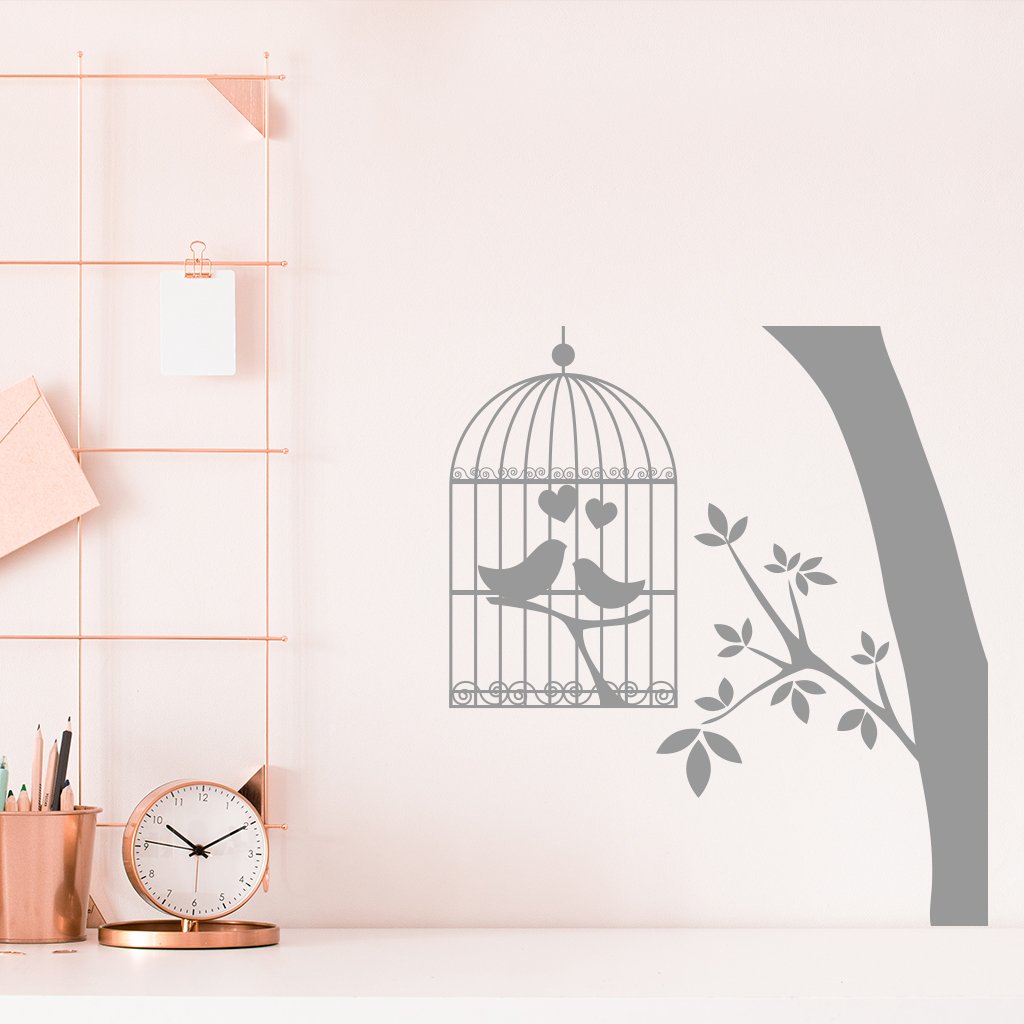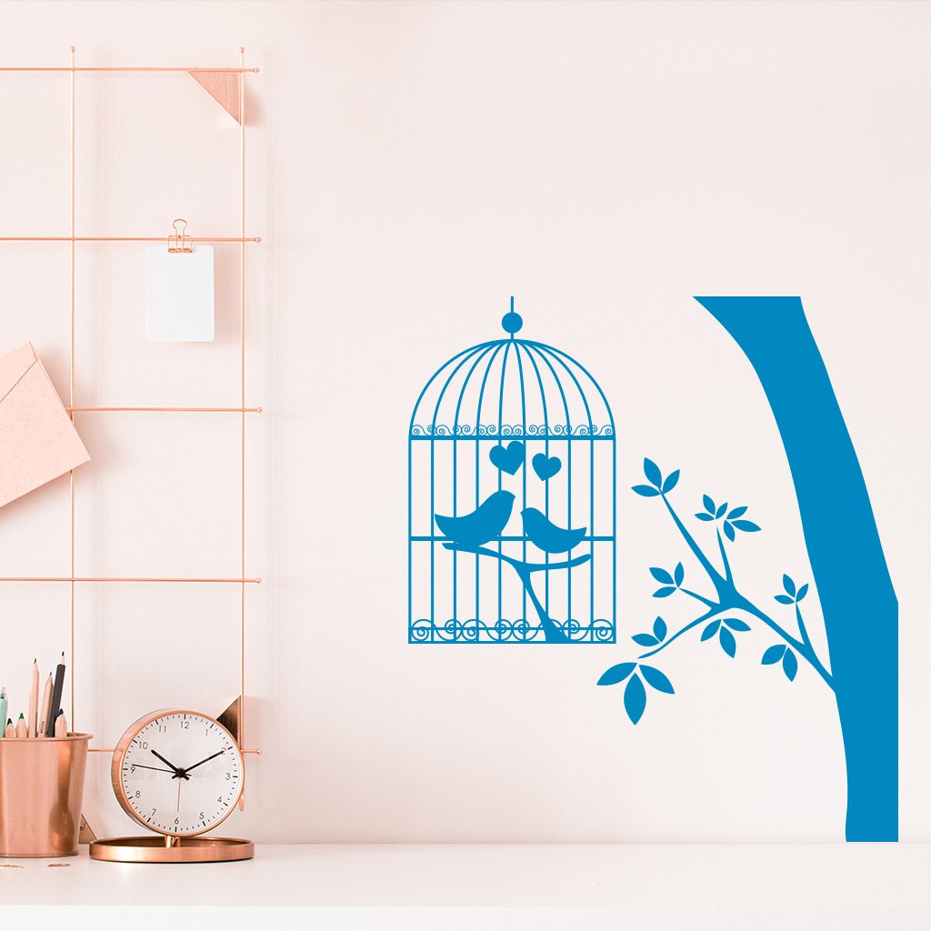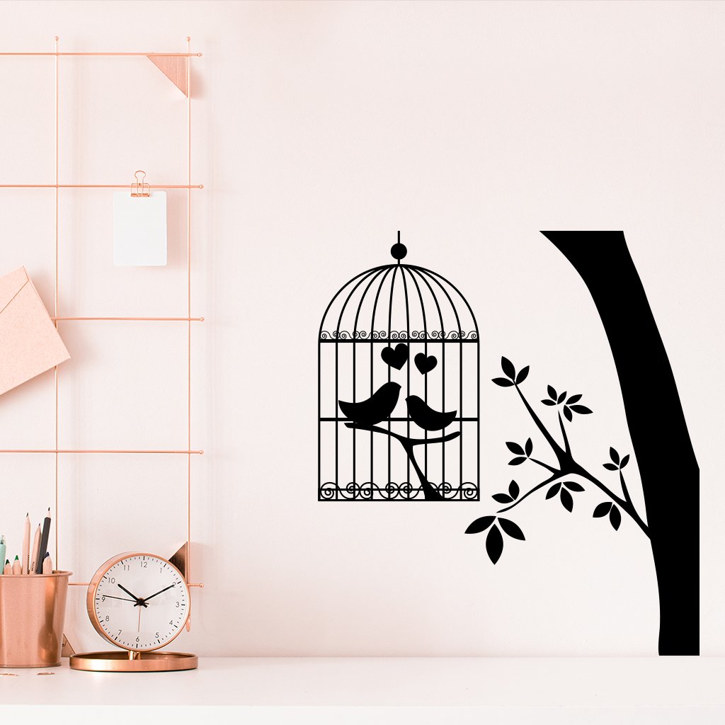 Táto originálna samolepiaca dekorácia na stenu Zamilované vtáčiky v klietke bude krásnou ozdobou každej spálne i obývacej izby. Táto samolepka na stenu znázorňujúca dvoch vtáčikov na rande v klietke, vnesie poriadnu dávku lásky do každého domova. A pretože lásky nie je nikdy dosť, je táto dekorácia jednoducho nutnosťou.