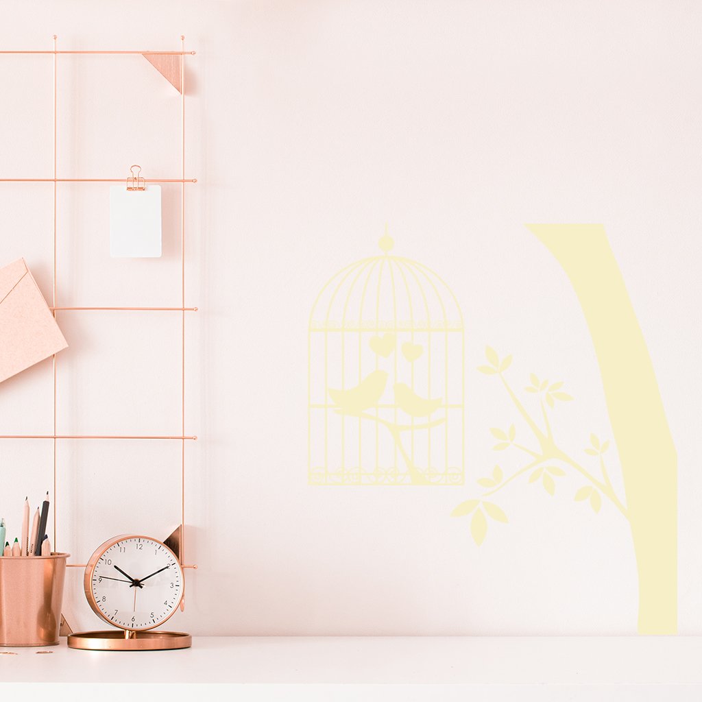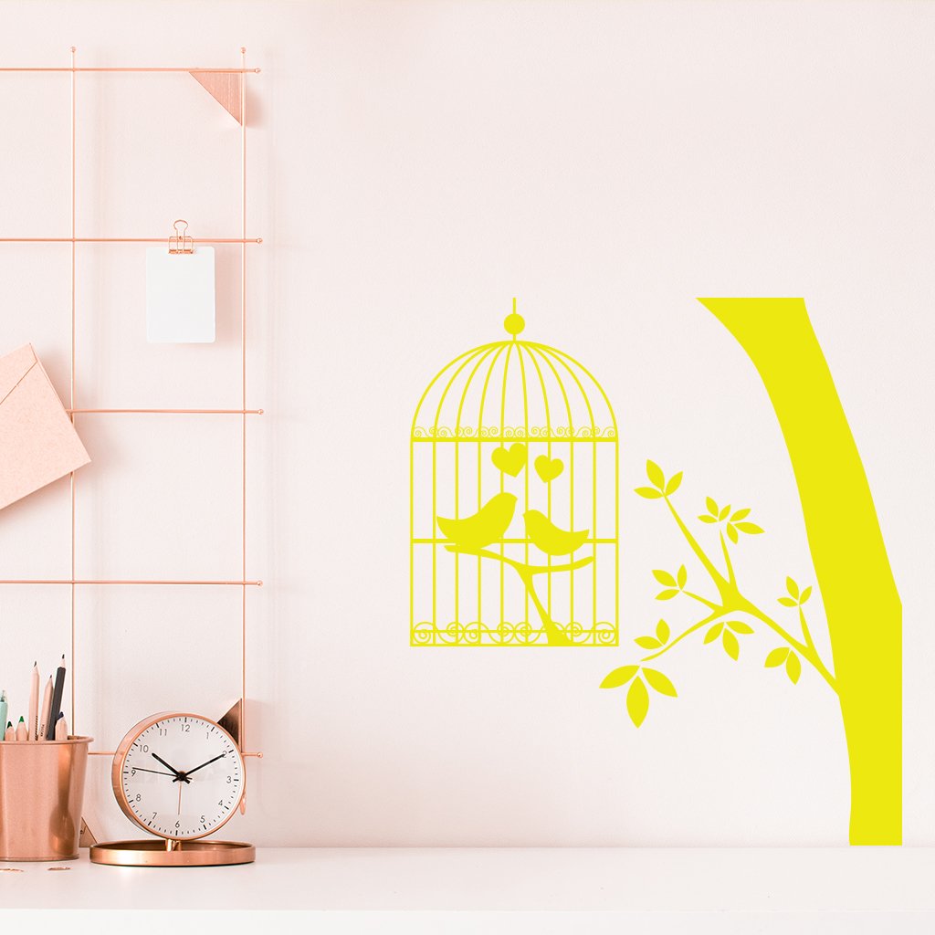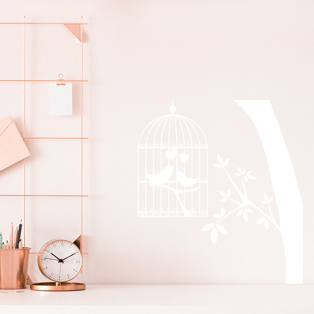 Táto originálna samolepiaca dekorácia na stenu Zamilované vtáčiky v klietke bude krásnou ozdobou každej spálne i obývacej izby. Táto samolepka na stenu znázorňujúca dvoch vtáčikov na rande v klietke, vnesie poriadnu dávku lásky do každého domova. A pretože lásky nie je nikdy dosť, je táto dekorácia jednoducho nutnosťou.