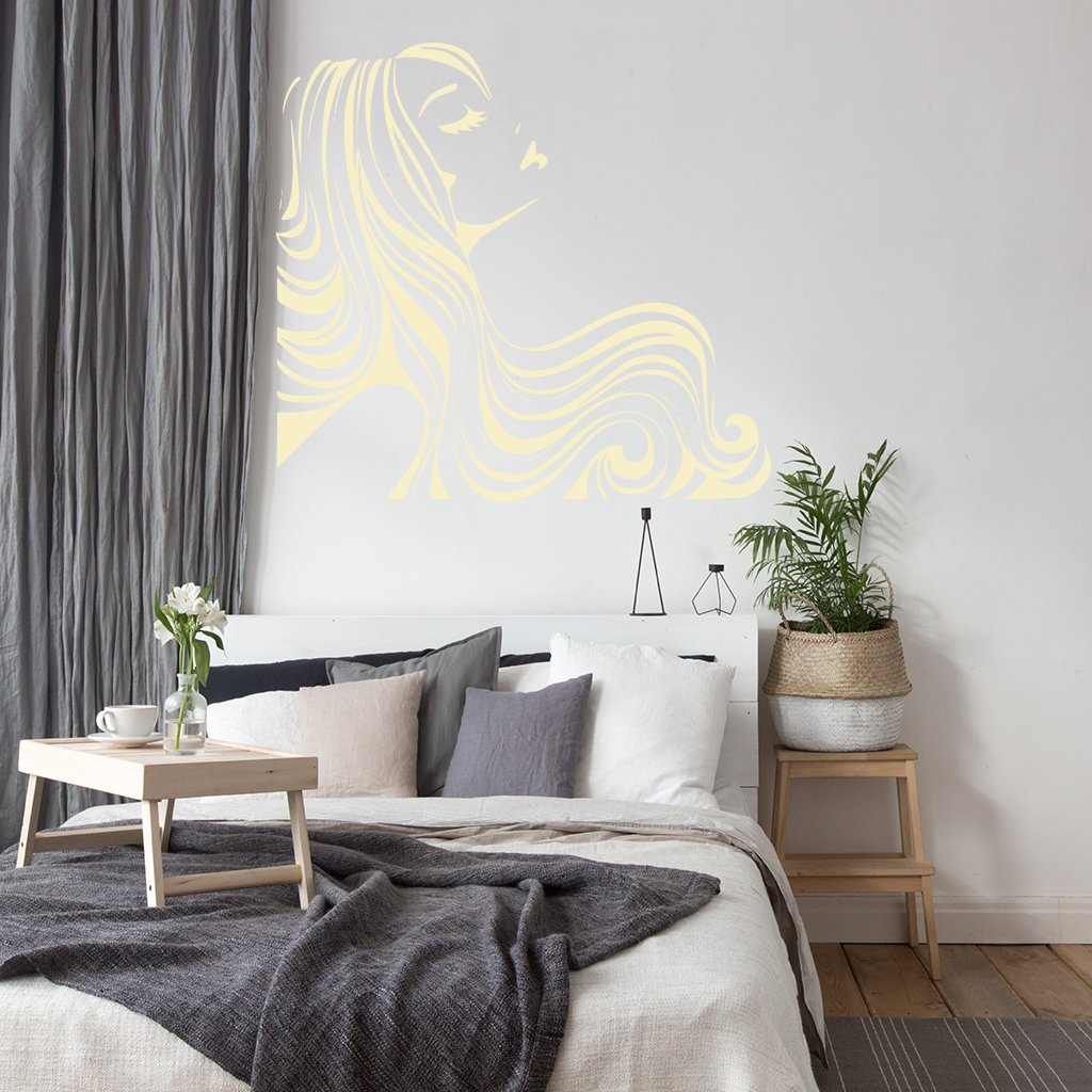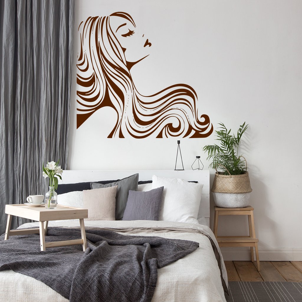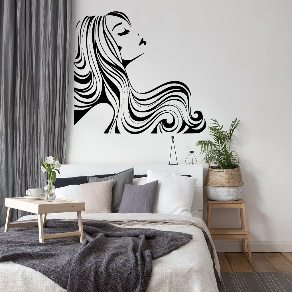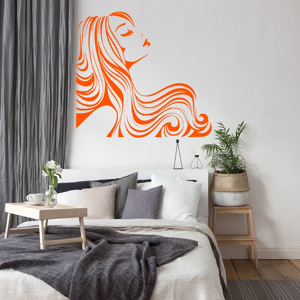 Táto originálna samolepiaca dekorácia na stenu Žena z profilu sa bude krásne vynímať na stene dievčenskej izby, obývacej izbe, spálni, či kaderníckeho salónu. Pokiaľ máte doma malú parádnicu alebo začínajúcu mladú kaderníčku, tak táto samolepka je tou správnou voľbou.