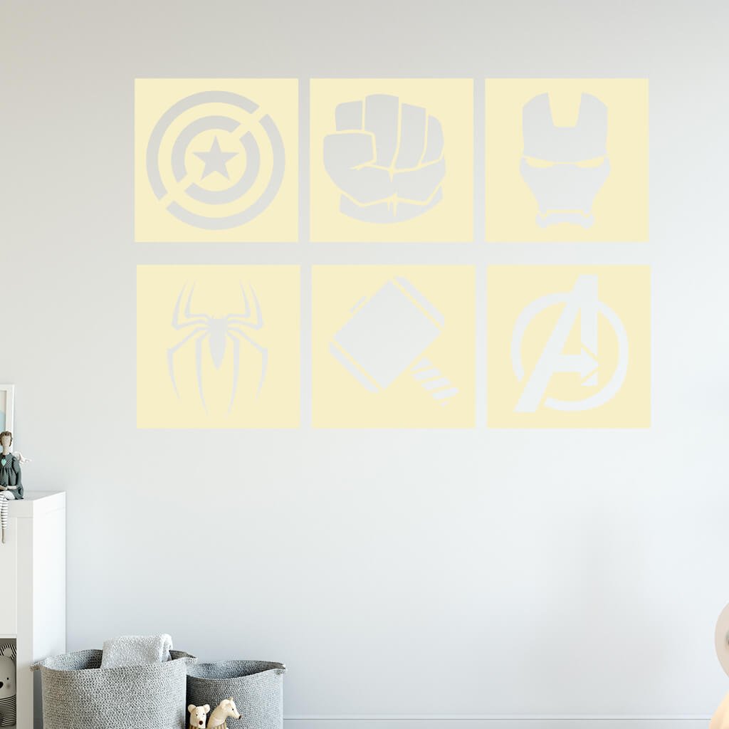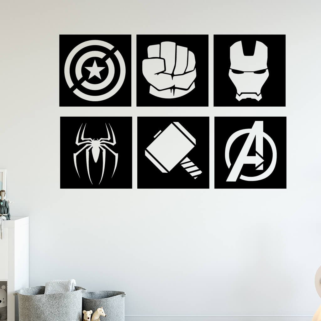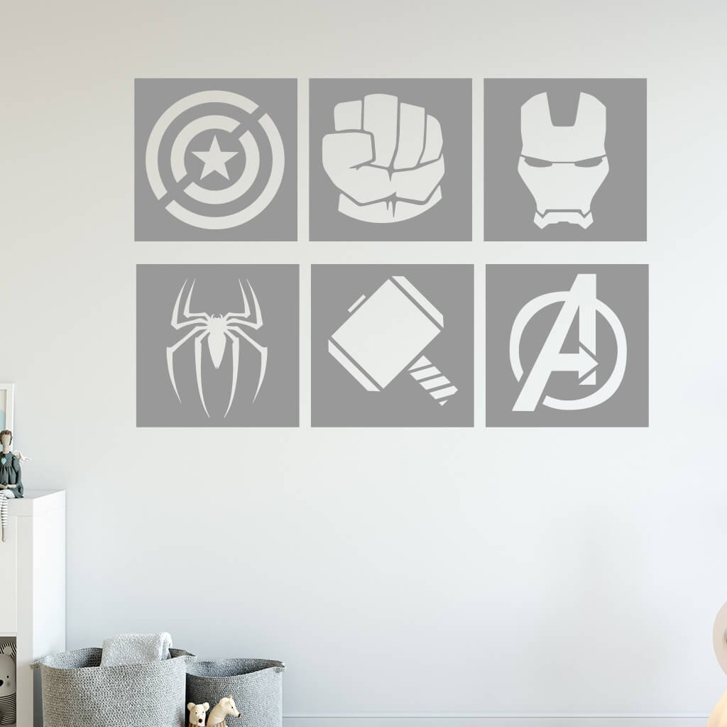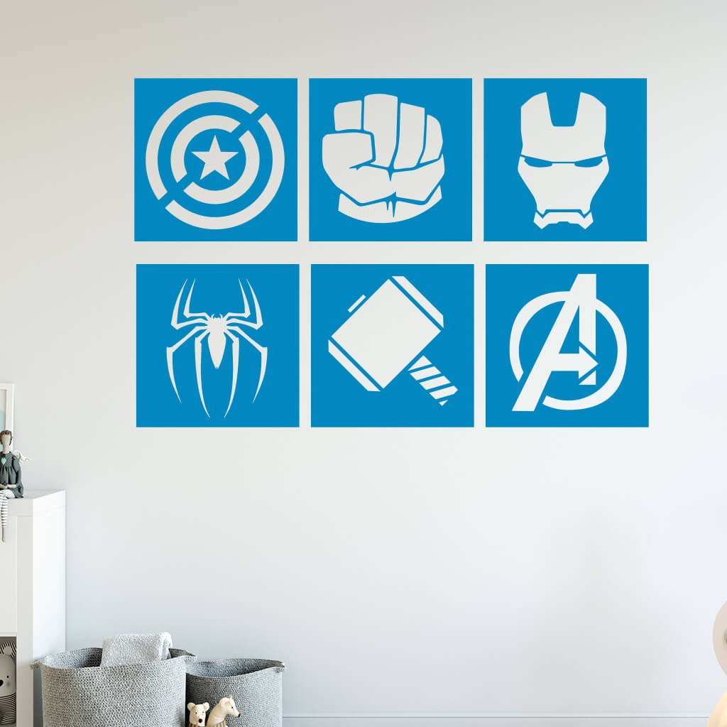 Samolepka na stenu sa skladá zo 6 znakov hrdinských Avengers.