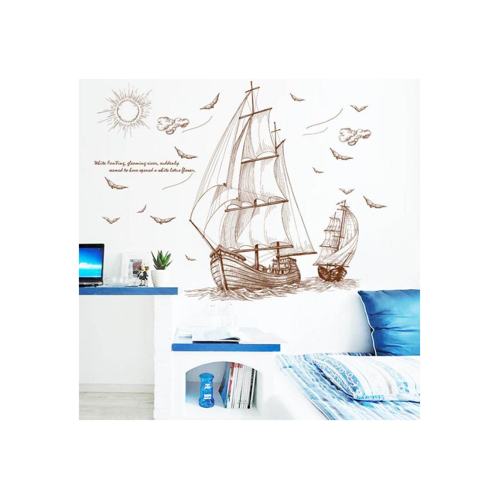 Originálna samolepiaca dekorácia na stenu s motívom plaviace plachetnice.