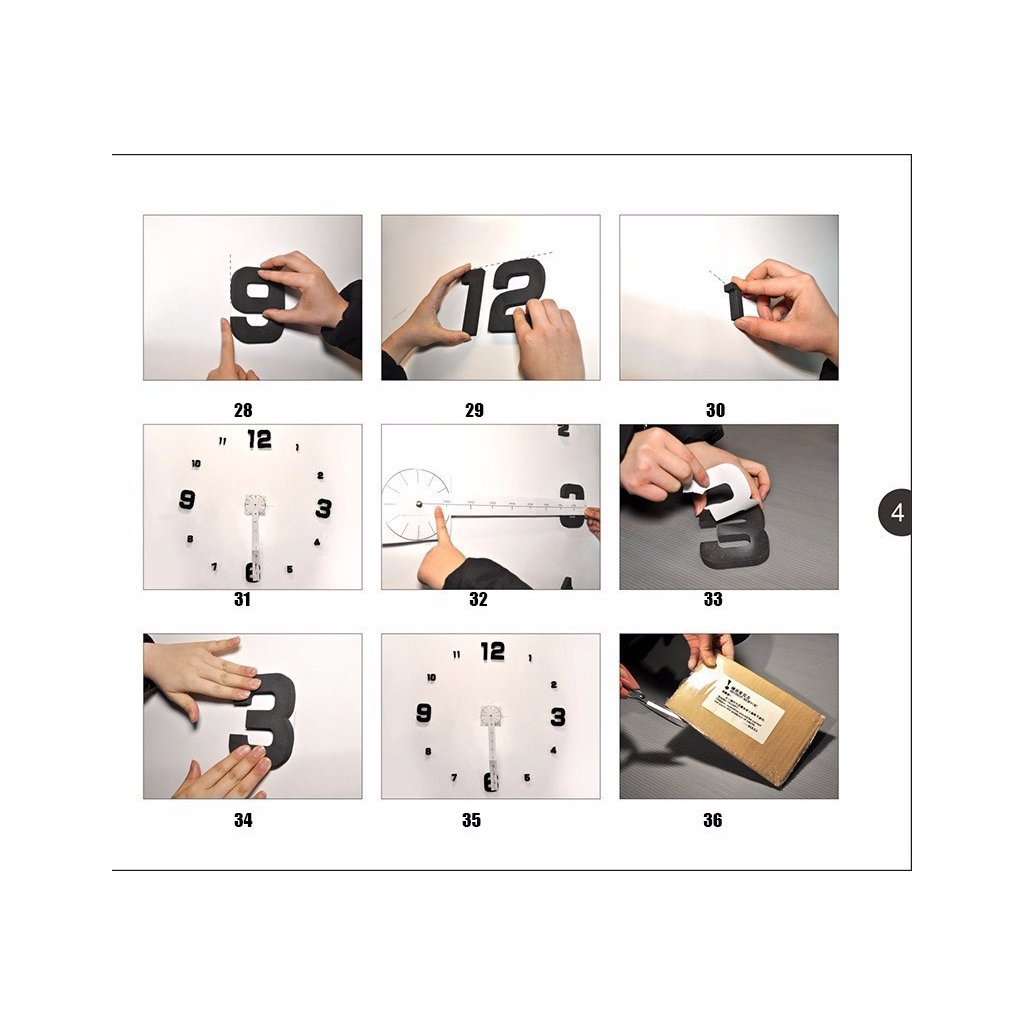 U týchto samolepiacich nástenných hodinách je potrebná istá zručnosť pri inštalácii. Či budú pripomínať orloj alebo dielo od Dalího, bude dosť závisieť na vás. Ak sa pri ich rozbalení doma zľaknete a budete ich chcieť darovať, ubezpečte sa, že obdarovaná osoba pozná rímske čísla. V opačnom prípade sa inštalácii asi nevyhnete. Tak veľa šťastia a chuti do toho! Balenie obsahuje pomôcky, ktoré vám pomôžu na ceste k dokonalosti tvaru týchto hodín.