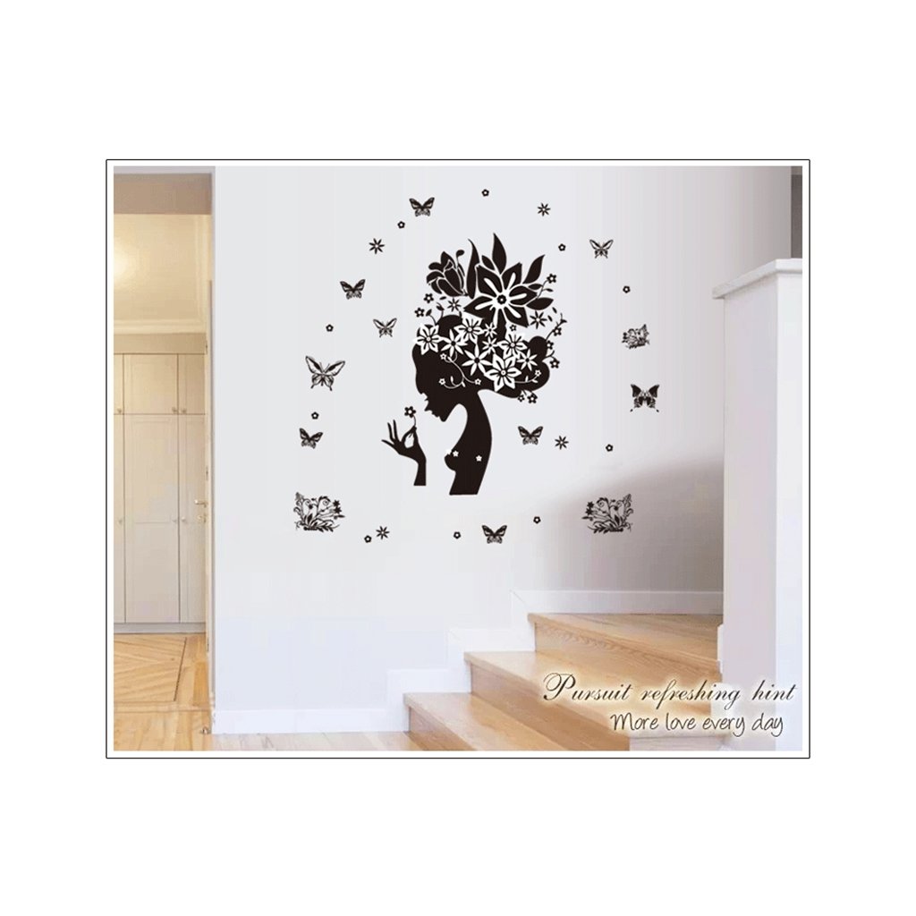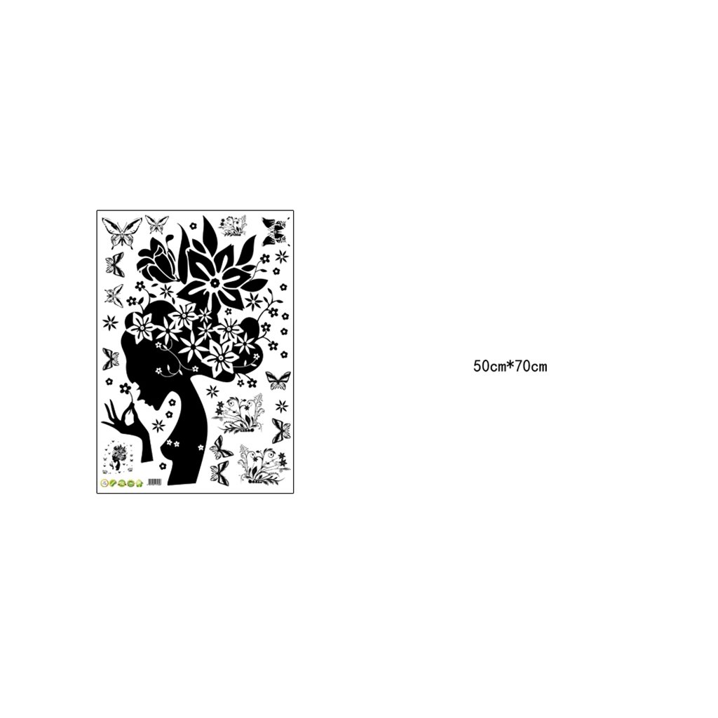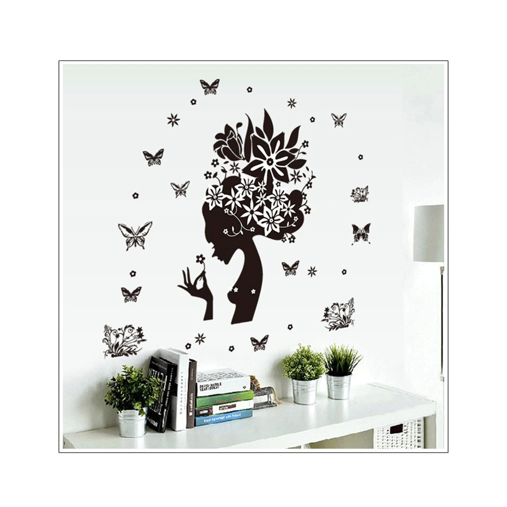 Elegantná čierna samolepka s motívom Dievčaťa držiaceho kvetinu obklopeného motýlikmi sa síce moc nehodí do izby futbalistu a už vôbec nie do garáže alebo dielne, ale v dievčenskom pokoji vynikne skutočne úžasne. Bude pôsobiť romanticky a určite ozvláštni váš interiér. Výslednú veľkosť celého obrazu si môžete prispôsobiť podľa vašej kreativity. Nalepením tapety zároveň zakryjete nedostatky na stene alebo inom opotrebovanom povrchu.