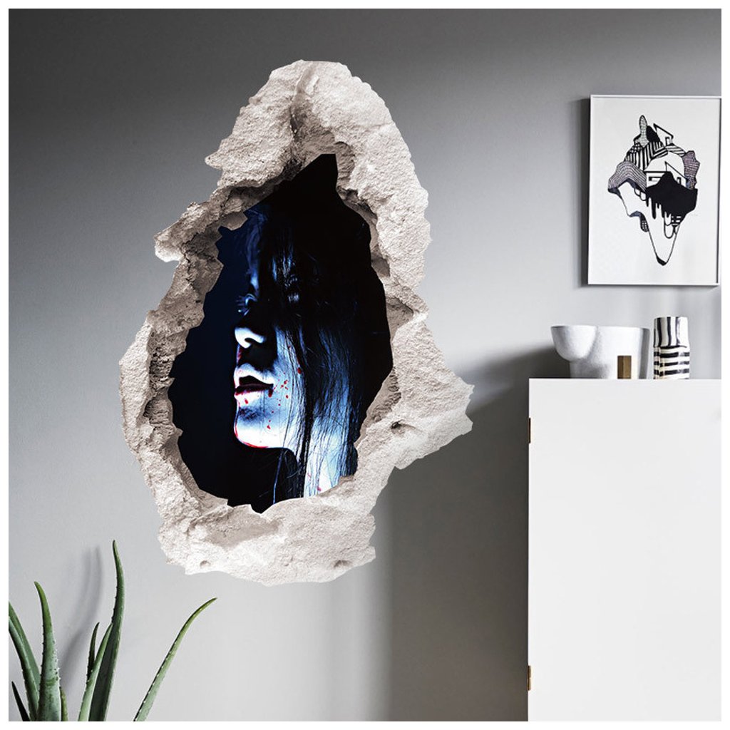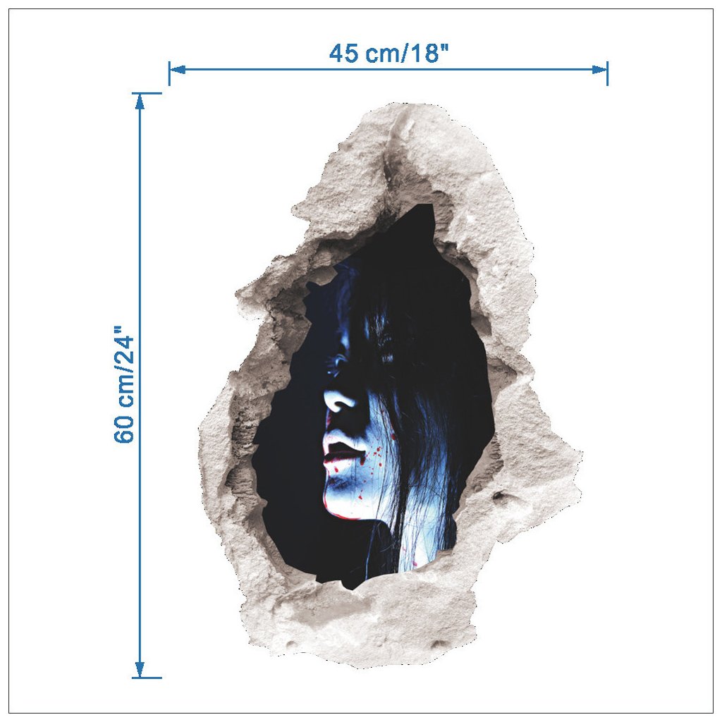 Hororová 3D samolepka Halloween 3D Tajomná tvár, ako strašidelná samolepiaca dekorácia na stenu alebo dvere. Chcete počas halloweenu poriadne vystrašiť susedov? Tato milá dáma vám v tom určite pomôže.