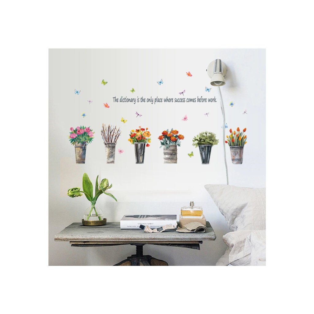 Chcete oživiť detský kútik, alebo hľadáte vhodnú dekoráciu do obývacej izby? Samolepka nielen na stenu s motívom rozkvitnutých kvetináčov rozjasní akýkoľvek interiér. Samolepku si môžete rozvrhnúť podľa vašej kreativity. Môže zakryť aj nedostatky na podklade.