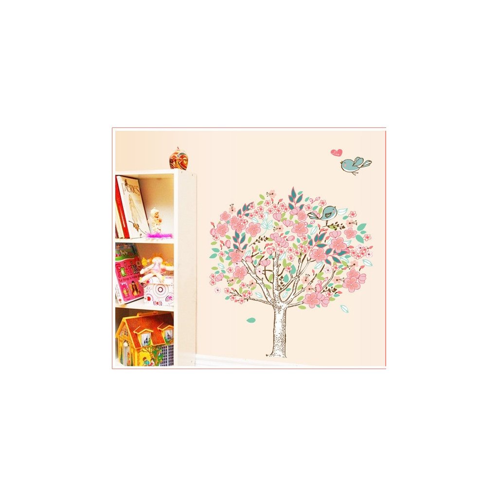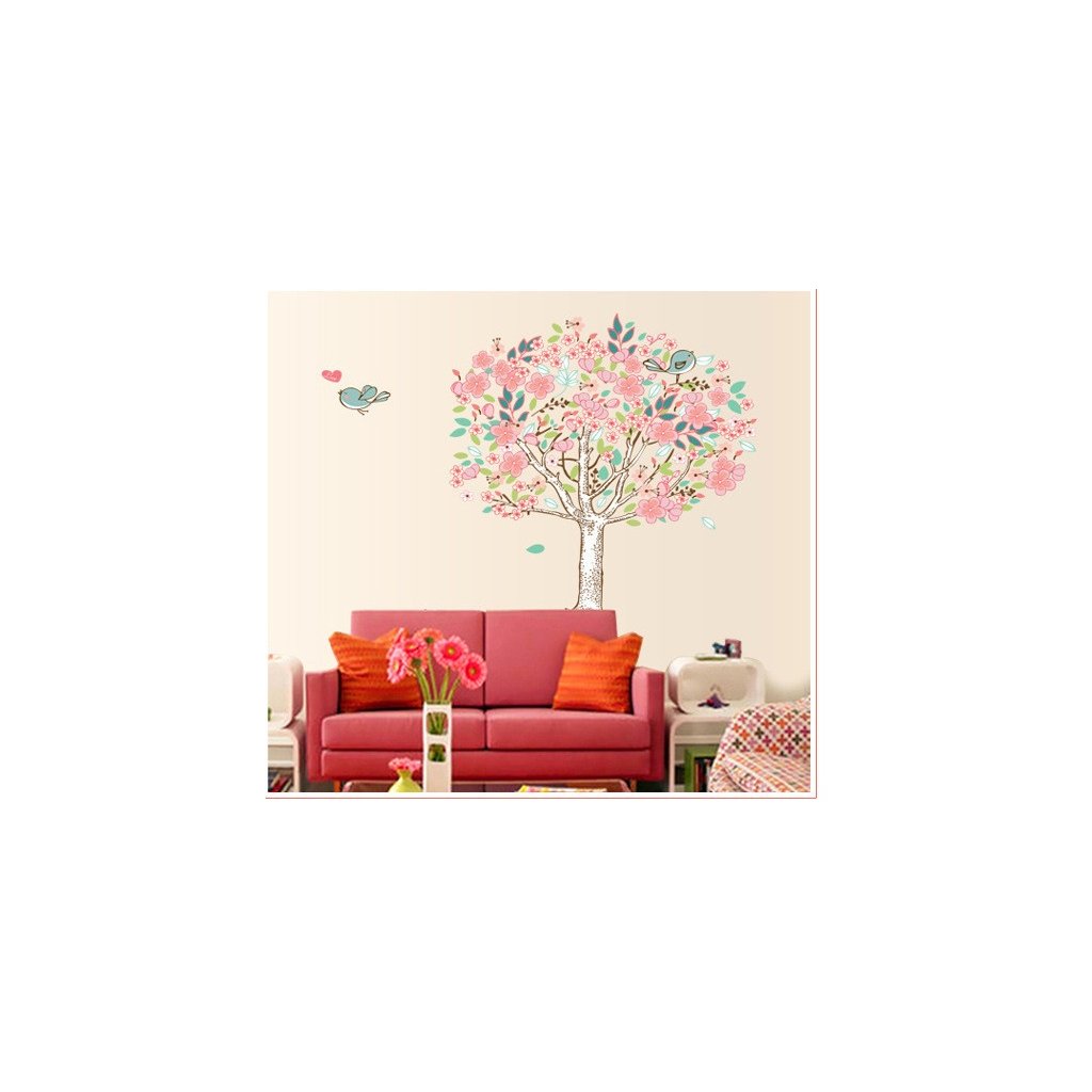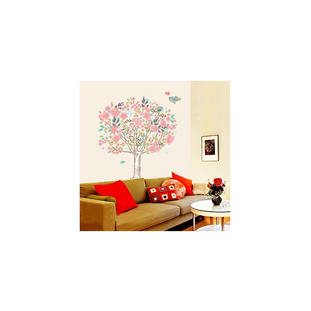 Vďaka tejto samolepiacej tapete na stenu s motívom Rozkvitnutého stromu s vtáčikmi netradične oživíte váš domov.