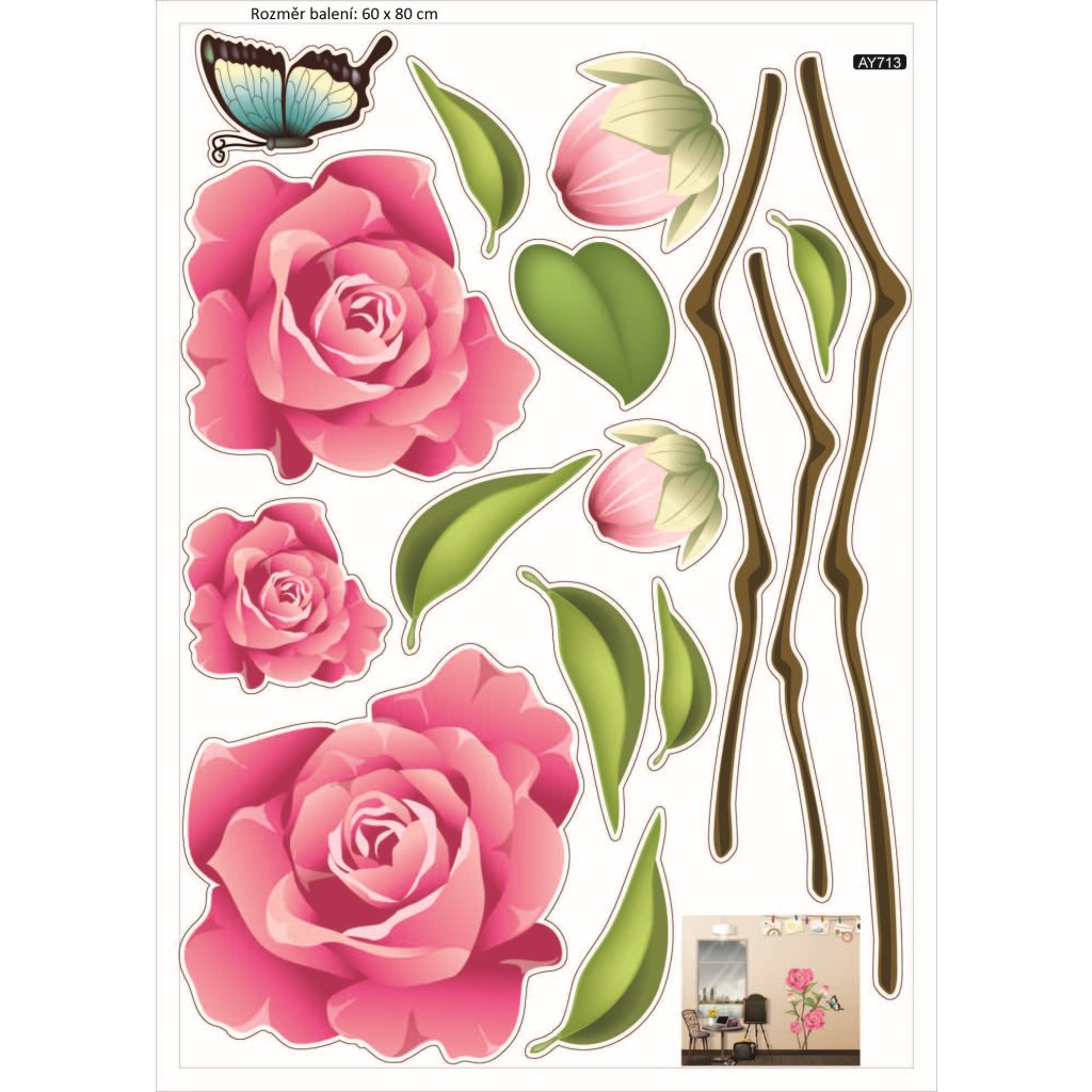 Efektná, farebná samolepka na stenu s motívom Ružových ruží.