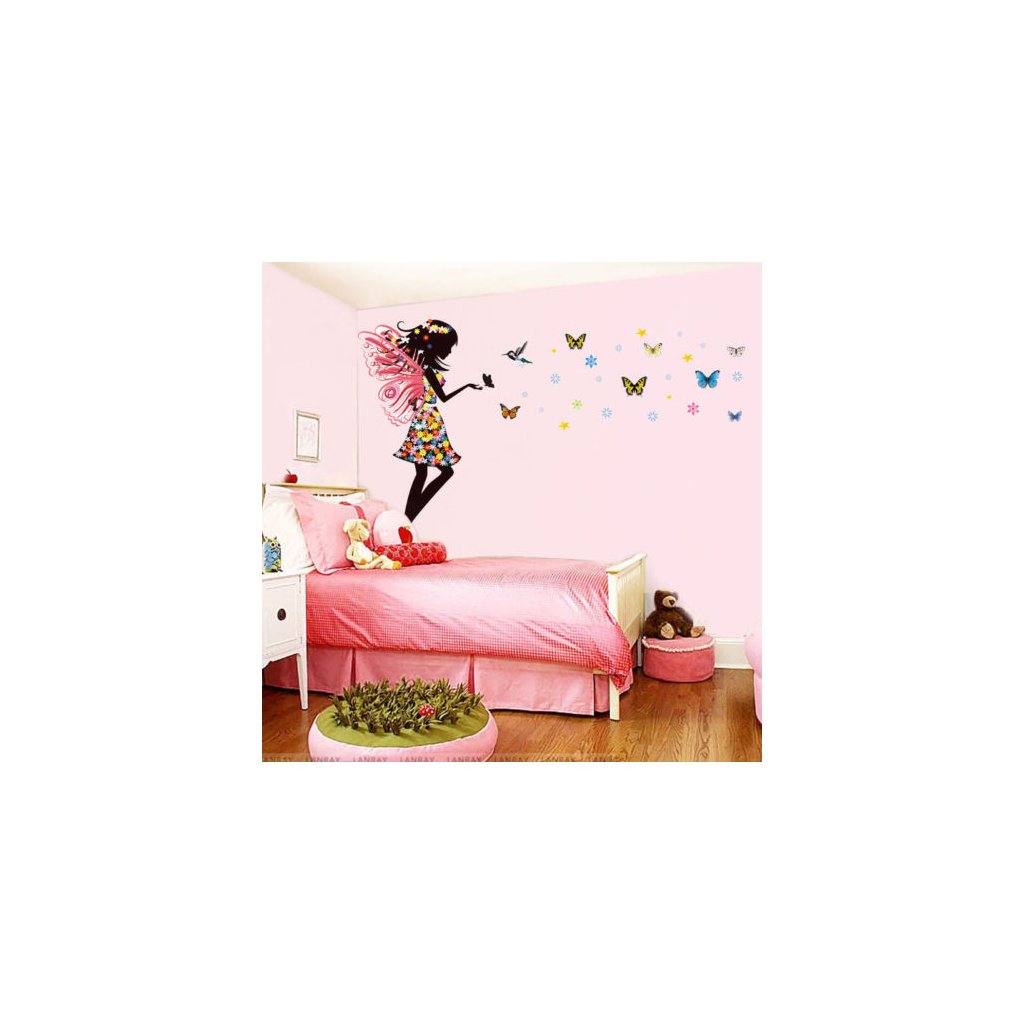 Veselá samolepiaca dekorácia na stenu s motívom ružovej Víly s krídlami.